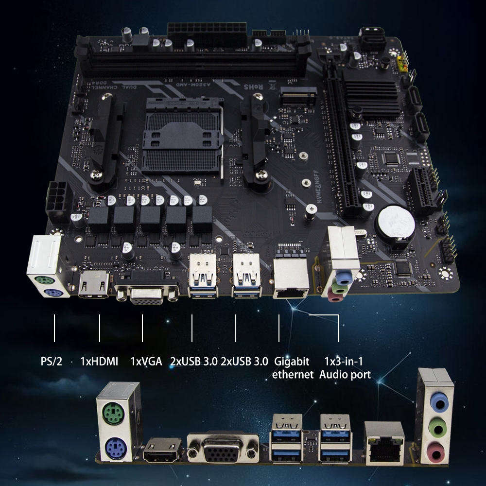 AISURIX Motherboard A320M ATX (AM4, DDR4, USB3.0)2400/2666/3200 A320M Mainboard Support Nvme SATA M.2