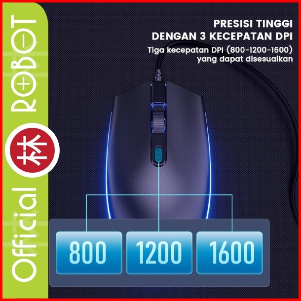 Robot M130 Wired Cable Mouse Kabel Led Colorful Office 3 Kecepatan Dpi