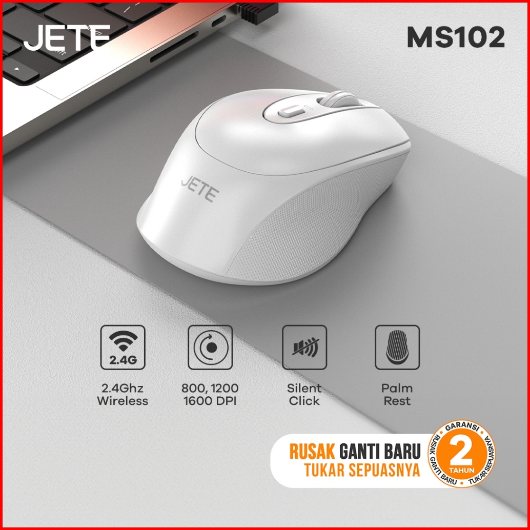 Mouse Silent Wireless Jete Ms102 With 3 Level Dpi Ergonomis Design - Garansi 2 Tahun