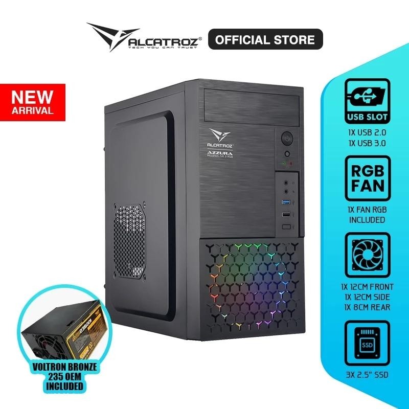 Alcatroz Azzura Millenia Air 1 / Air 2 / Air 3 RGB Casing PC m-ATX Include Pre-Installed 1 Fan RGB + PSU Voltron Bronze 235OEM