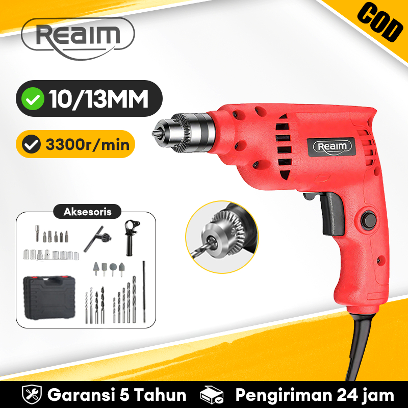 REAIM Mesin Bor Baterai 10/13mm Bolak Balik Electric Drill Bor Beton Kayu Besi Tembok Impact Drill