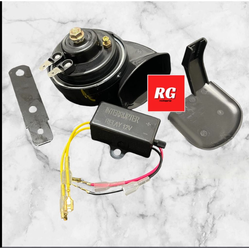 Racinggenk PAKET KLAKSON KEONG BEBEK DAN MATIC 12 VOLT HORN UNIVERSAL PLUS RELAY KLAKSON PUTUS 12 VOLT UNIVERSAL