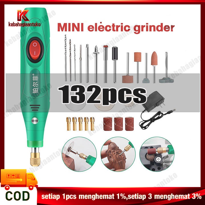 Mini 132PCS 12V DC 15000 RPM Mini Drill Electric Engraver Grinder Gerinda Electrik Listrik bor gerinda / Alat Ukir Kayu /Alat
