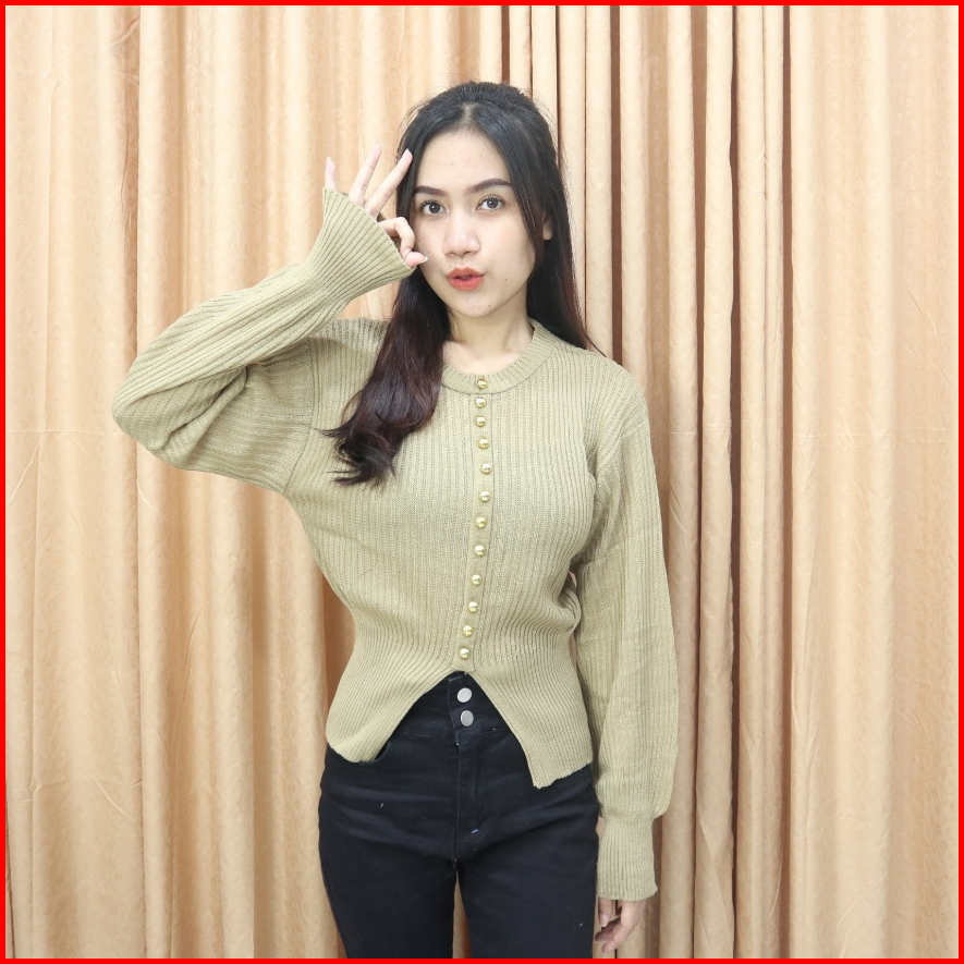 Atasan Rajut Oneck Lengan Panjang Wanita Kancing Mati Korean Style Kaos Top Baju Knit Wanita Basic Long Sleeve