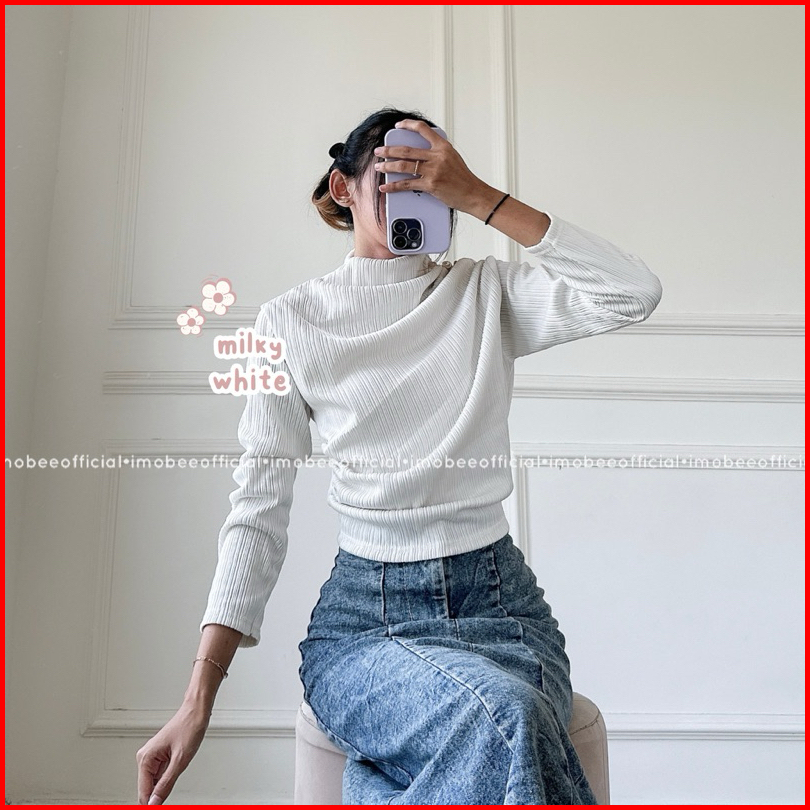 Imobeeofficial Ellena Drappery Top Blouse April Atasan Wanita Kerut Vintage Kancing Viral