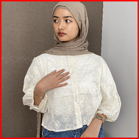 Florida Blouse Atasan Wanita Lengan Panjang Motif Bunga Hijab Friendly