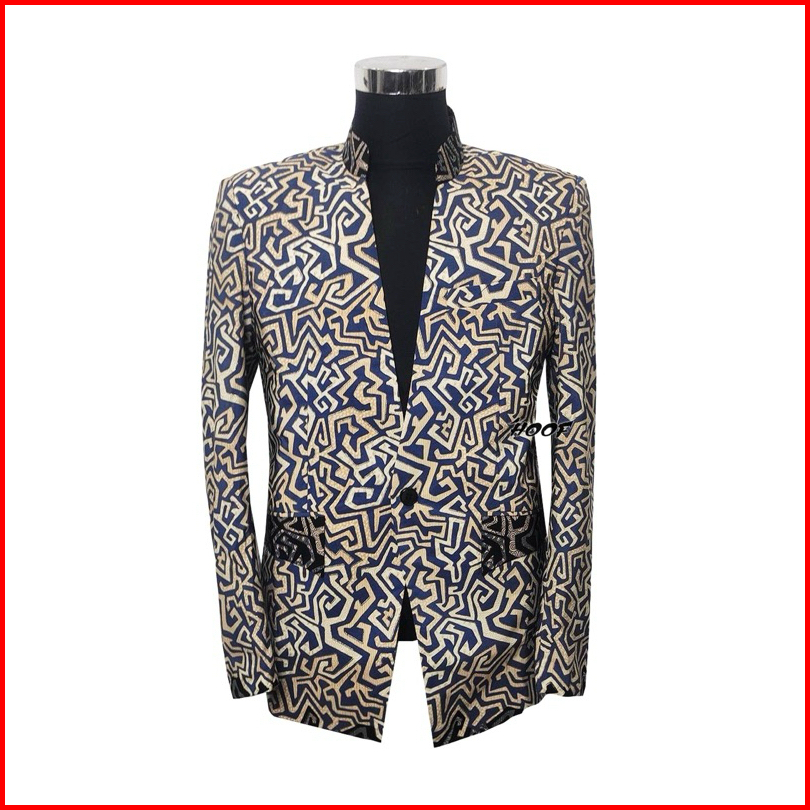 Hoof Blazer Pria Printing Kasual Kasual Batik