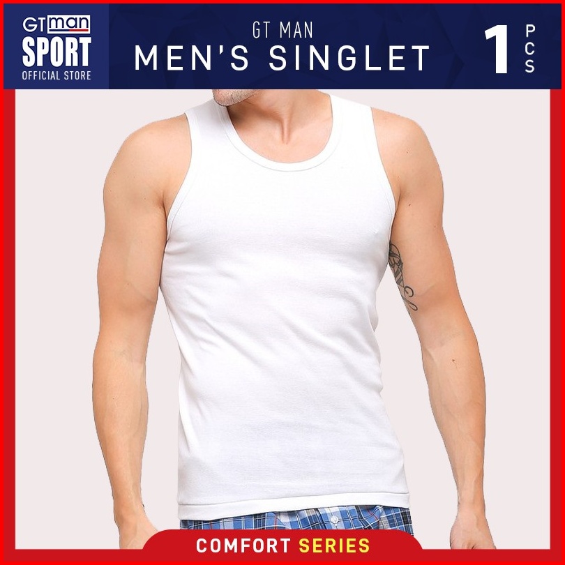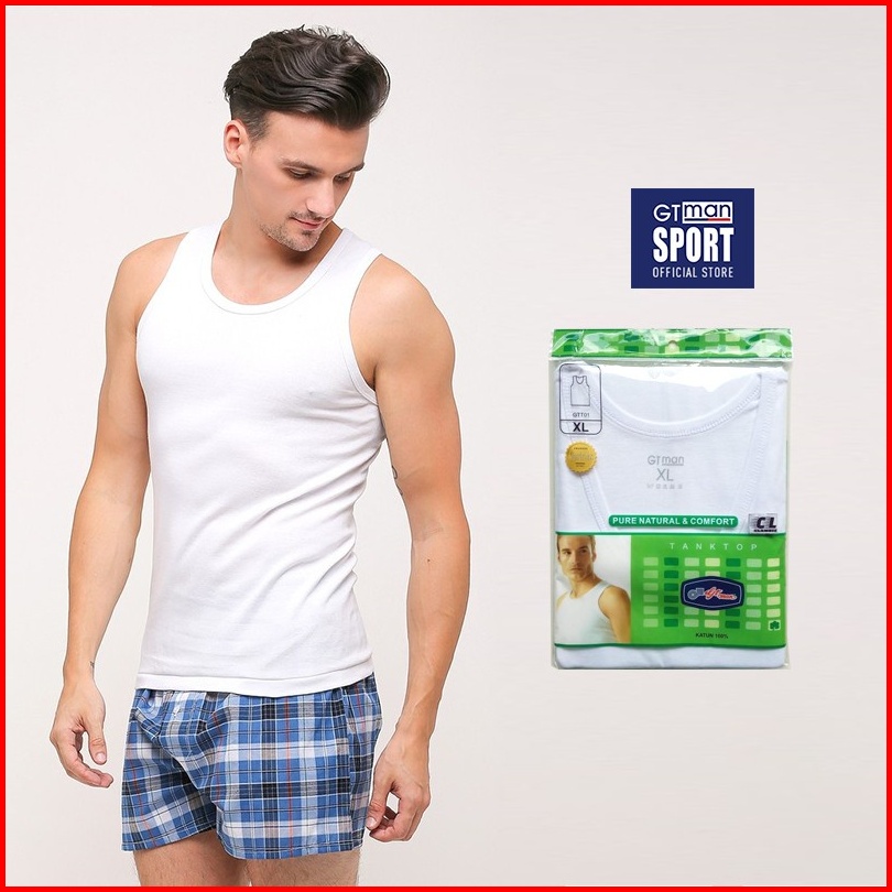 Gt Sport Singlet Putih Pria Gt Man Gtt01new Isi 1 Pcs - Men Tank Top Round Neck