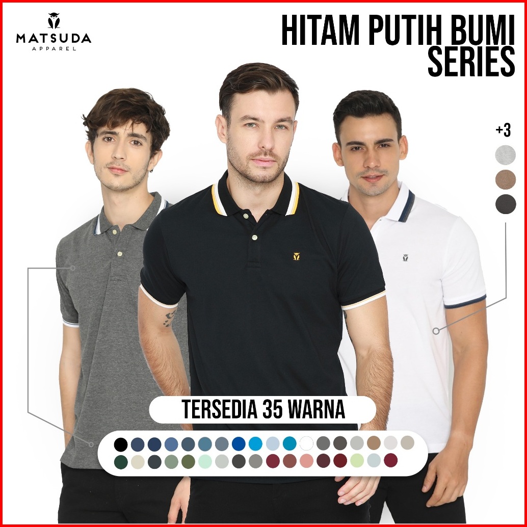 Matsuda Kaos Polo Shirt Pria Kerah Ai0i Seri Warna Hitam Putih Bumi