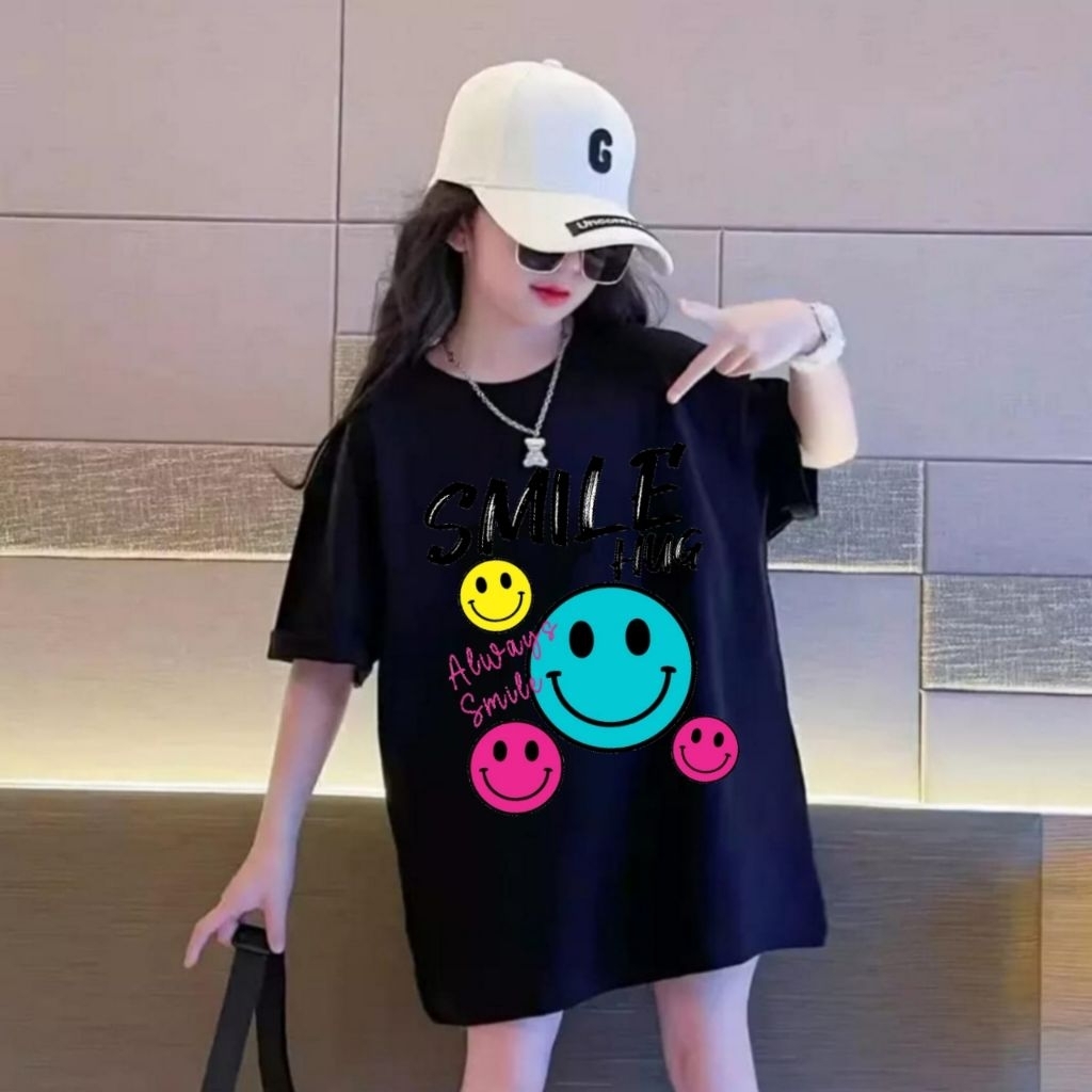 Kaos Distro OVERSIZE Anak SMILE Usia 3-14 Tahun/Baju Oversize Anak/Atasan Kaos Perempuan Anak/Pakaian Anak Terbaru