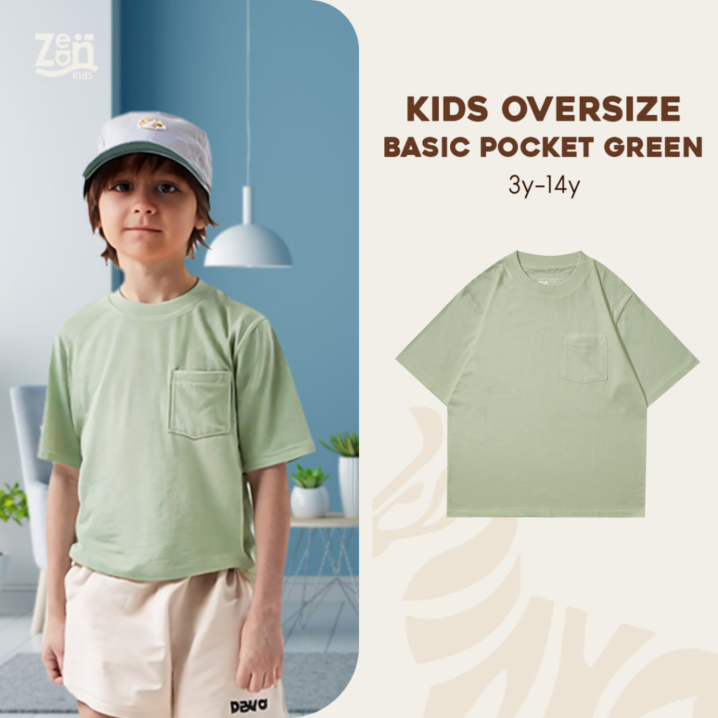 Zeankids Kaos Anak Oversize Polos Pocket Cotton Combed 24s Terbaru Termurah