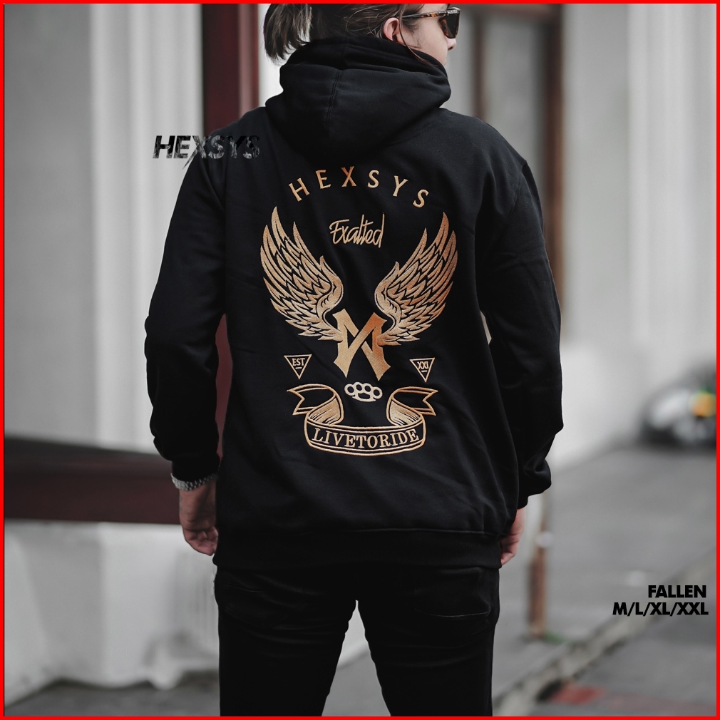 Bossque X Hexsys - Fallen Hoodie Pria Original Bordir Racing Sweter Pria Sweater Hodie Pria Distro