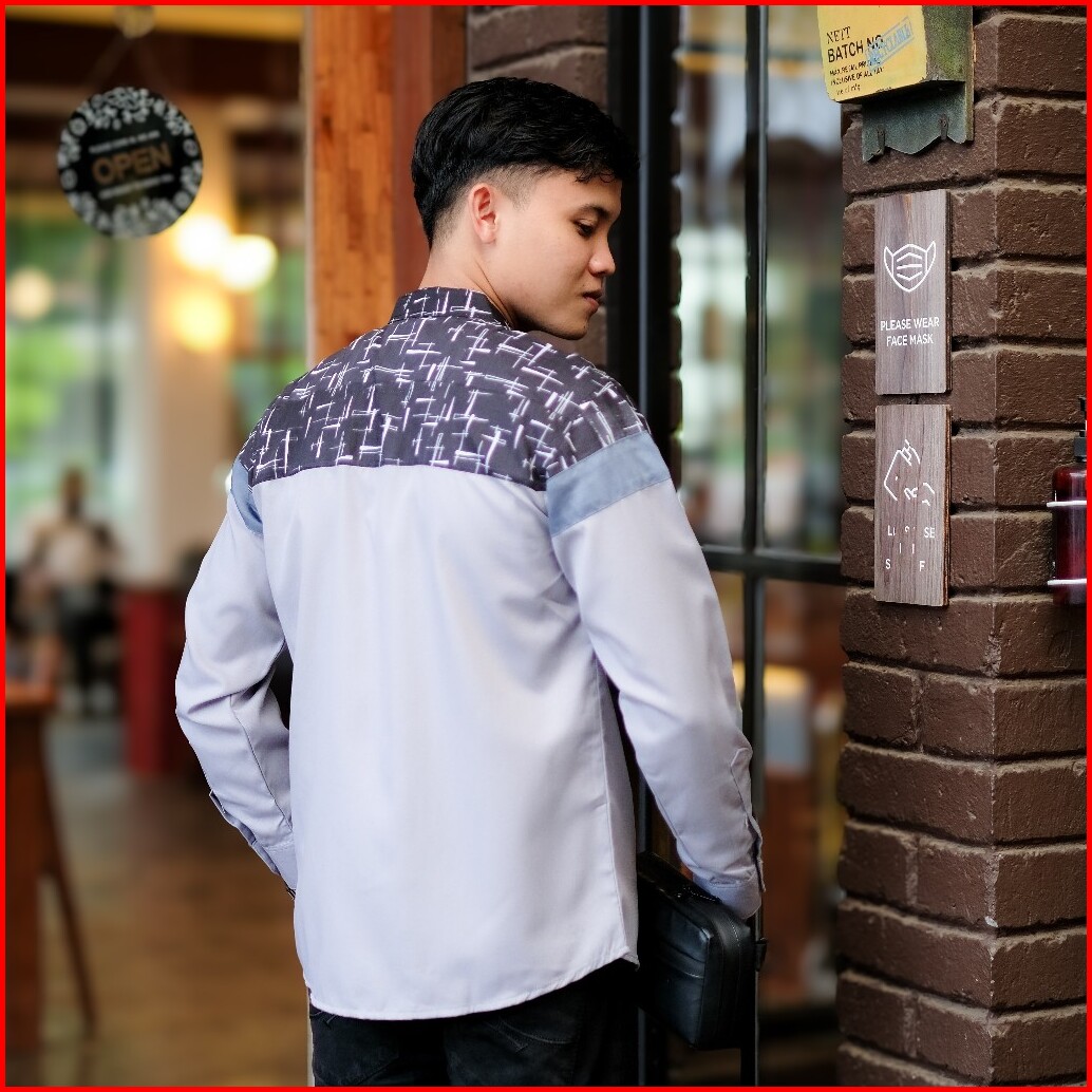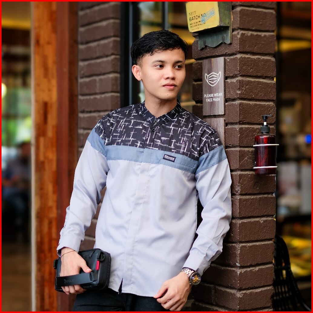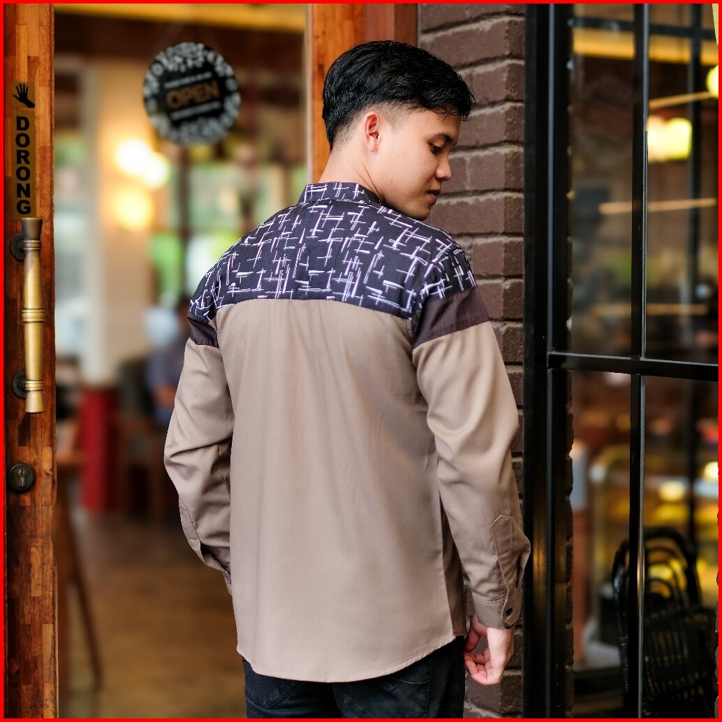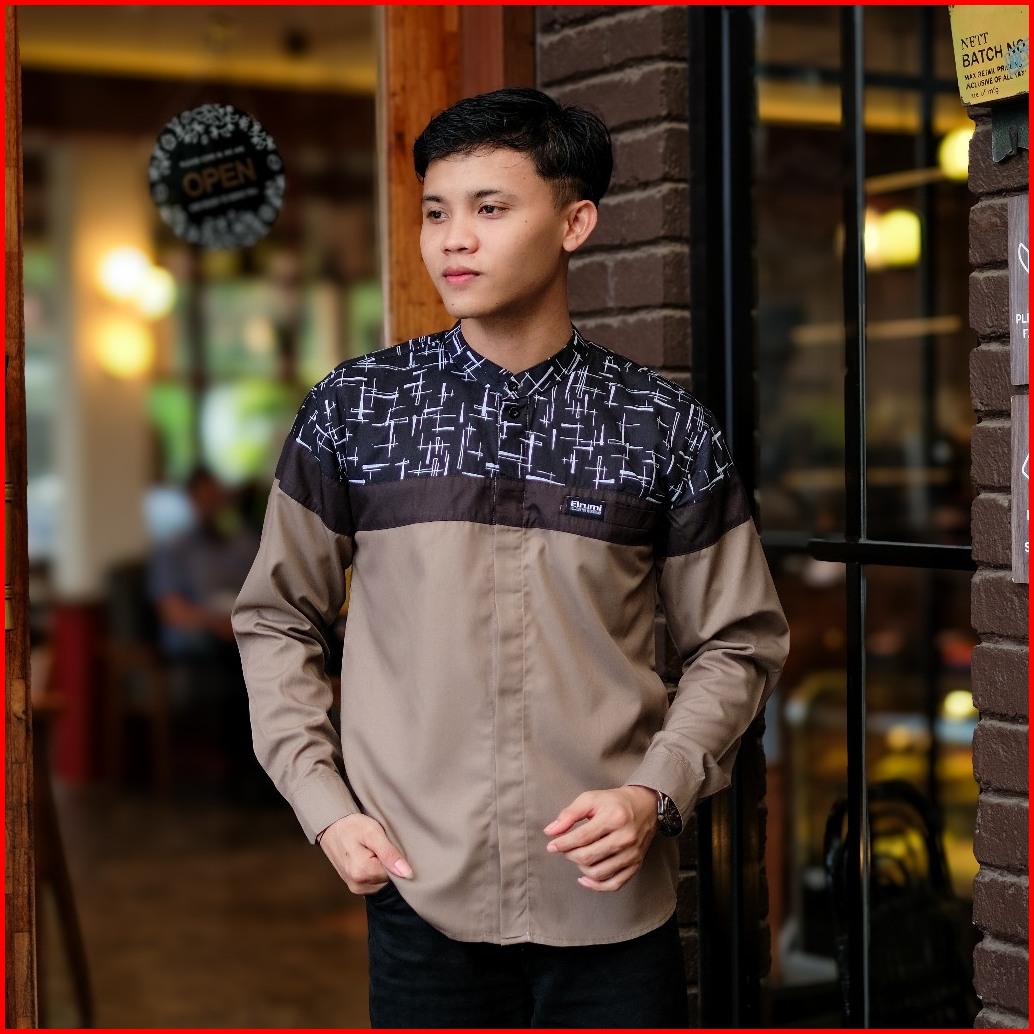 Baju Koko Pria Dewasa Lengan Panjang Elrumi Motif Senopati Kombinasi Batik