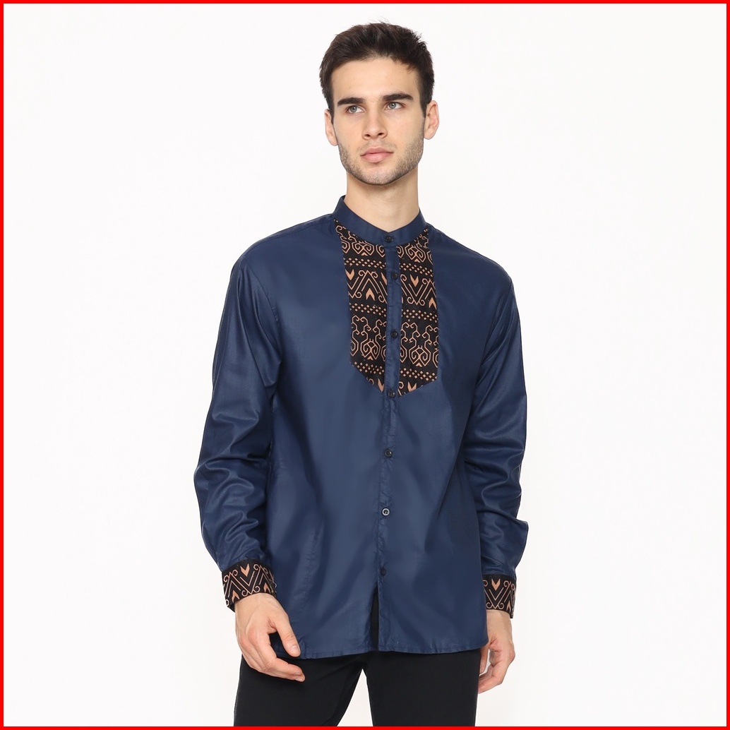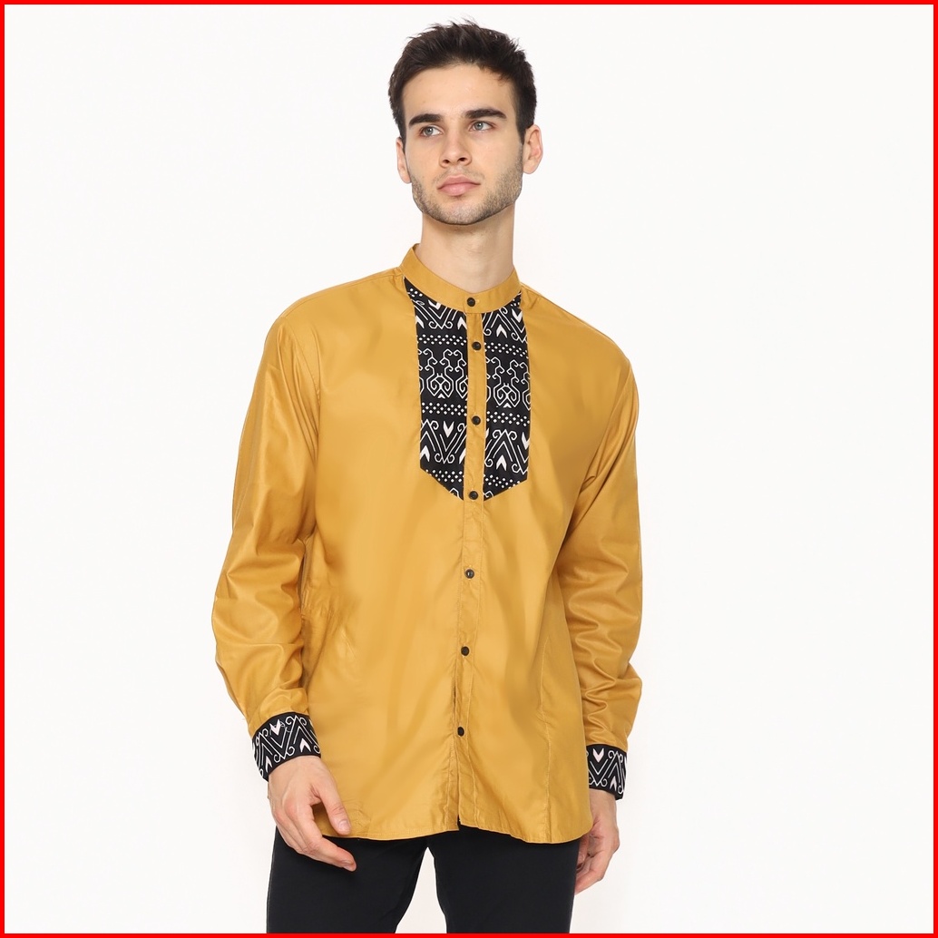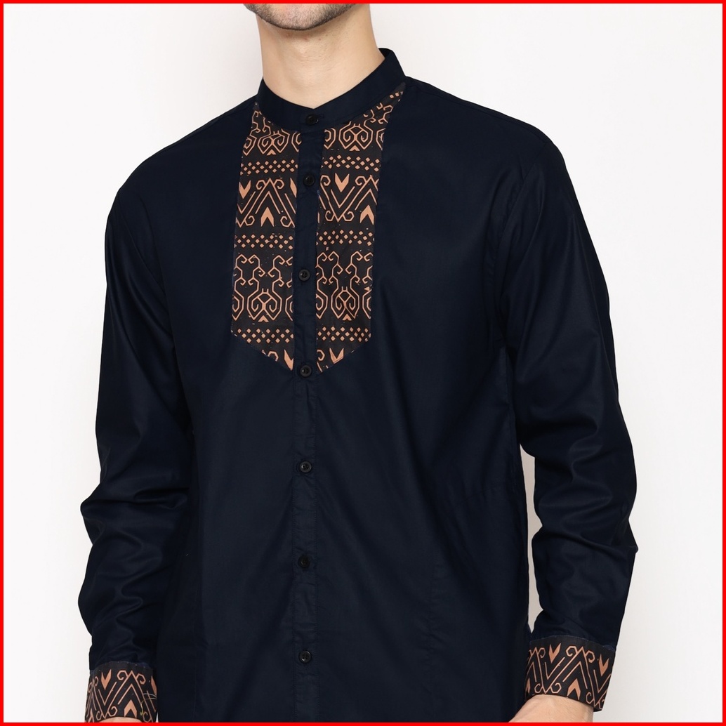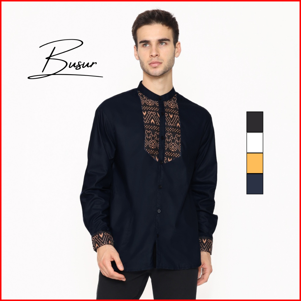Alawi - Baju Koko Pria Muslim Lengan Panjang Motif Busur Hitam Kombinasi Hadroh Azzahir M L Xl
