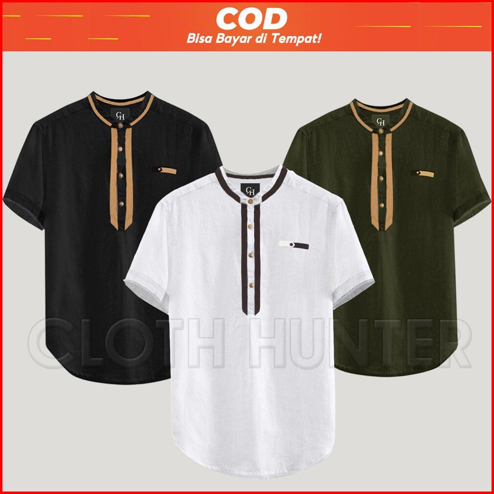 - Baju Koko Pria Lengan Pendek Ammar Kemeja Muslim Terbaru Tersedia 4 Warna Bahan Katun