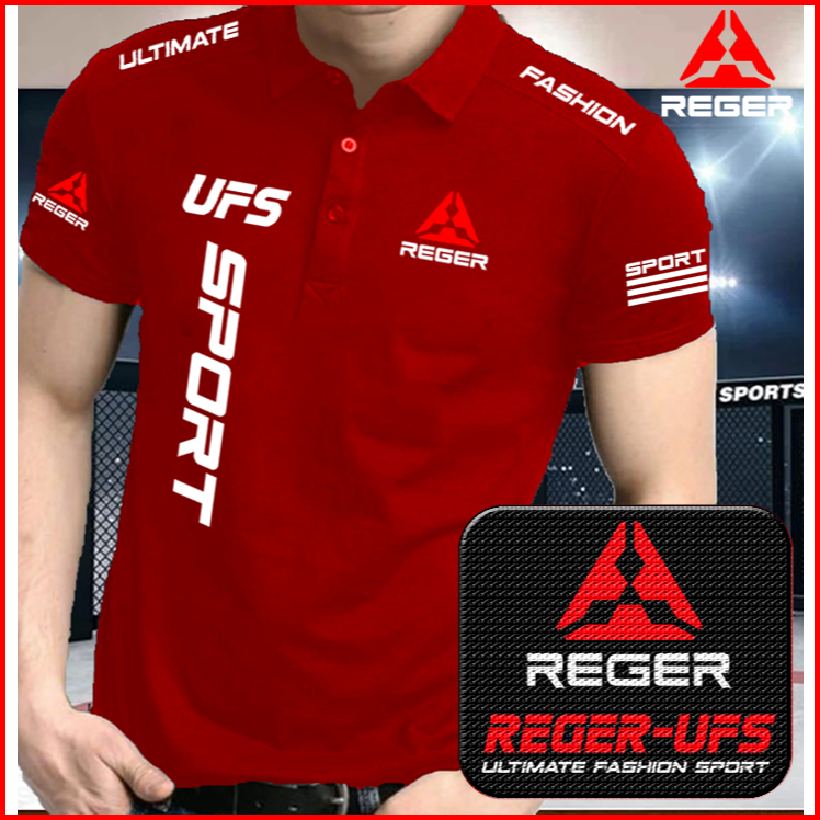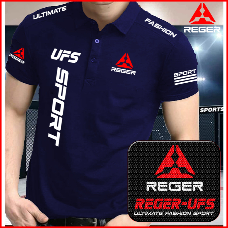 Muda Fashion - Polo Kaos Kerah Reger Ufs Sport Text Miring White Kaos Kerah Distro Baju Pria Laki Laki Wanita Dewasa