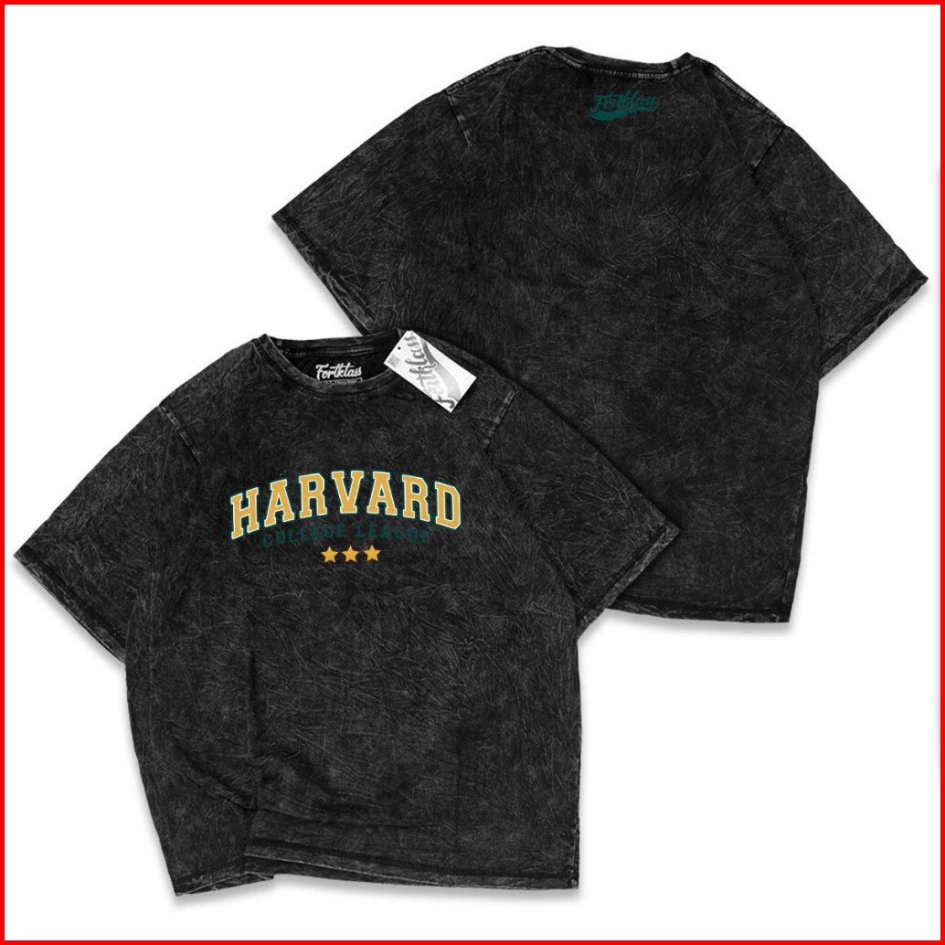 Fortklass Kaos Wash Harvard Kaos Oversize Pria Lengan Pendek Atasan Tshirt Distro Cowok Kaos Pria Kaos Polos Bigsize