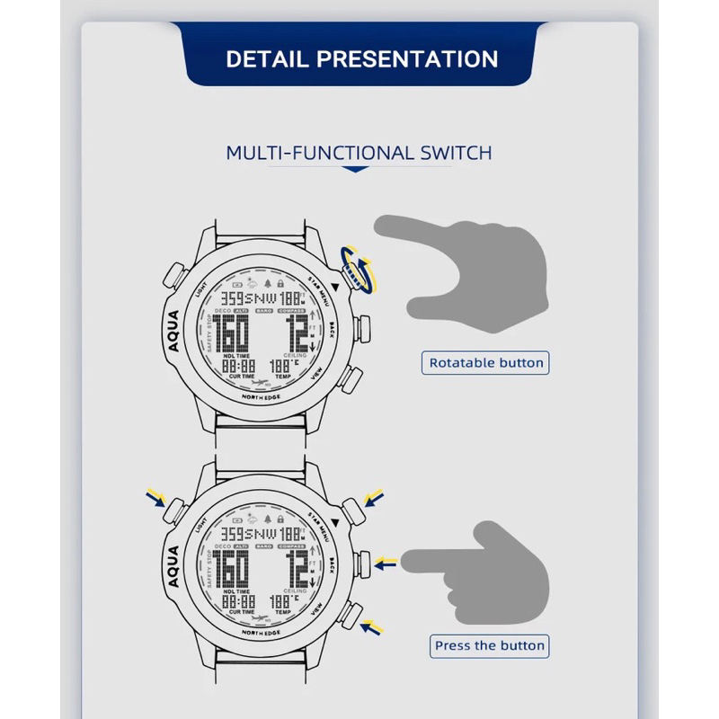 North Edge Aqua Men'S Professional Diving Computer Wwatch Scuba Diving 100M Altimeter Barometer Compass Dive Comp Nitrox