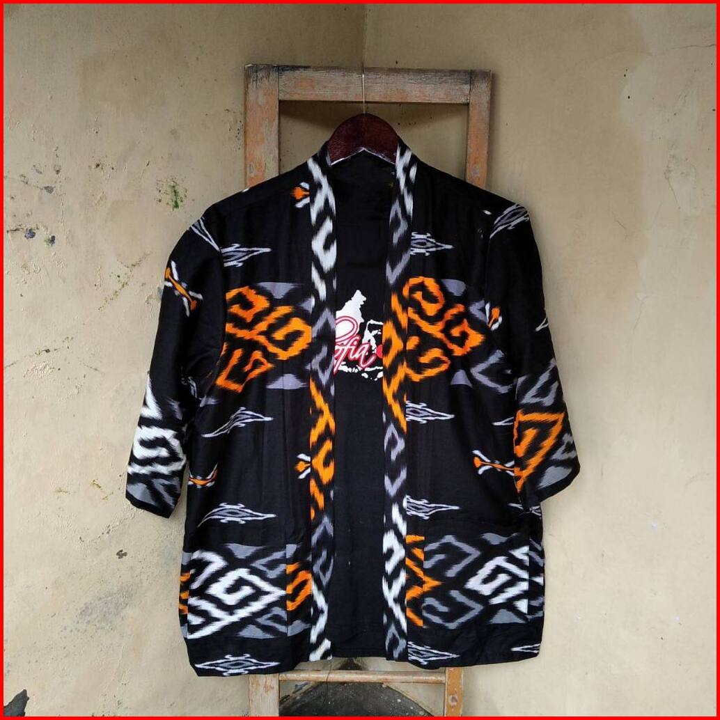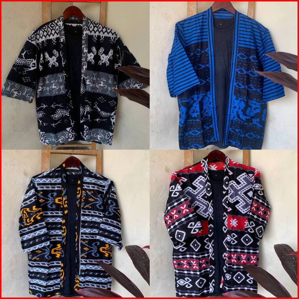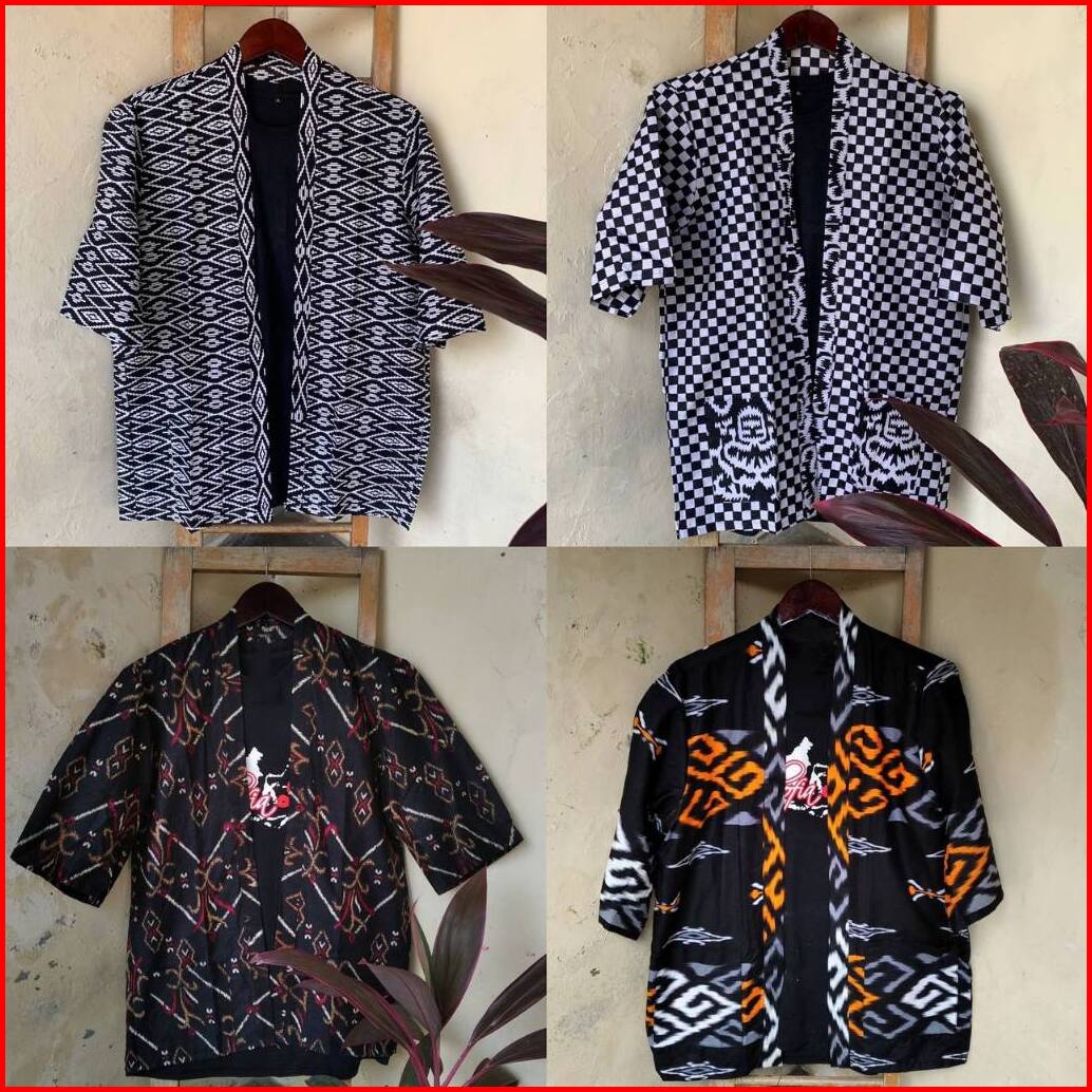 Wolv Kimono Outer Unisex Loose Casual Lengan Pendek Outer Cardigan Pria Etnik Outerwear Tenun