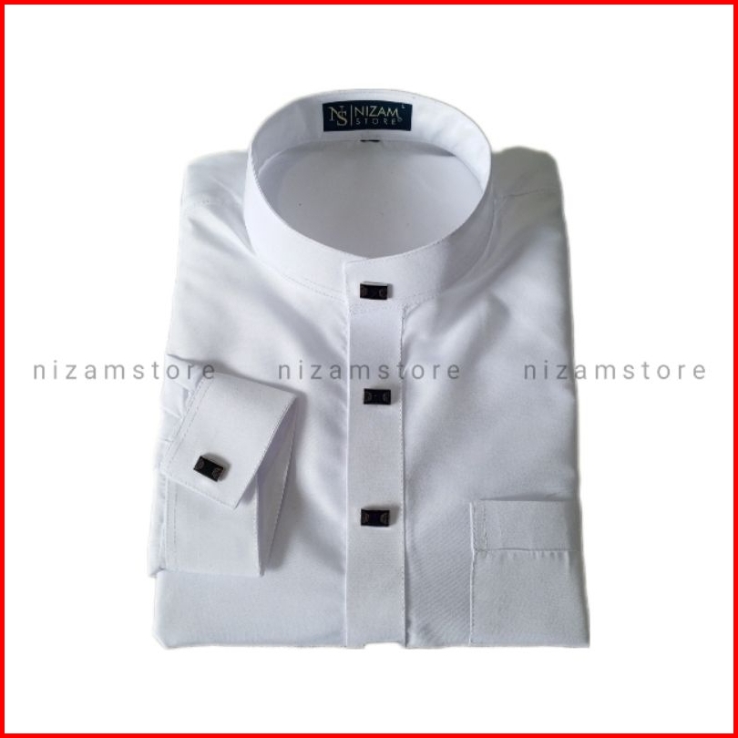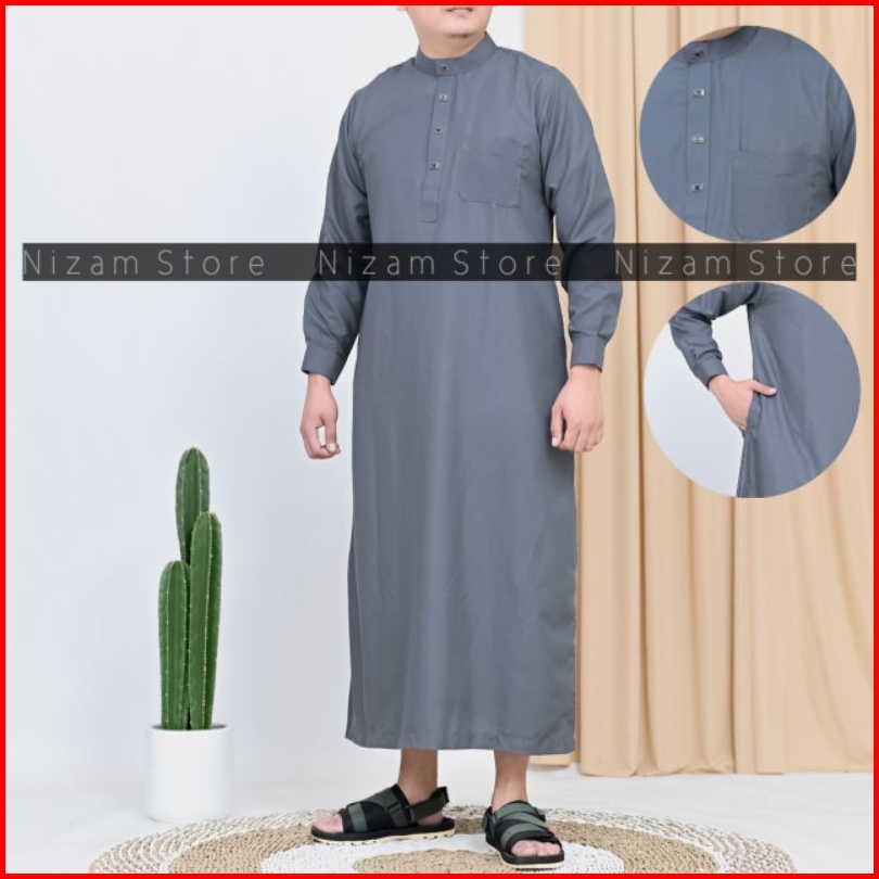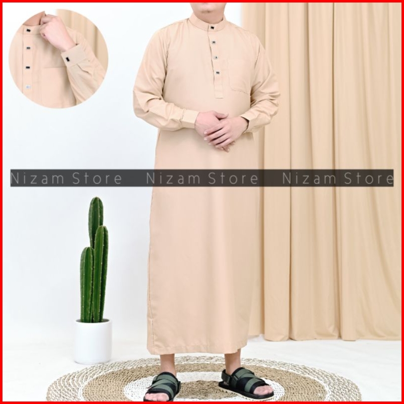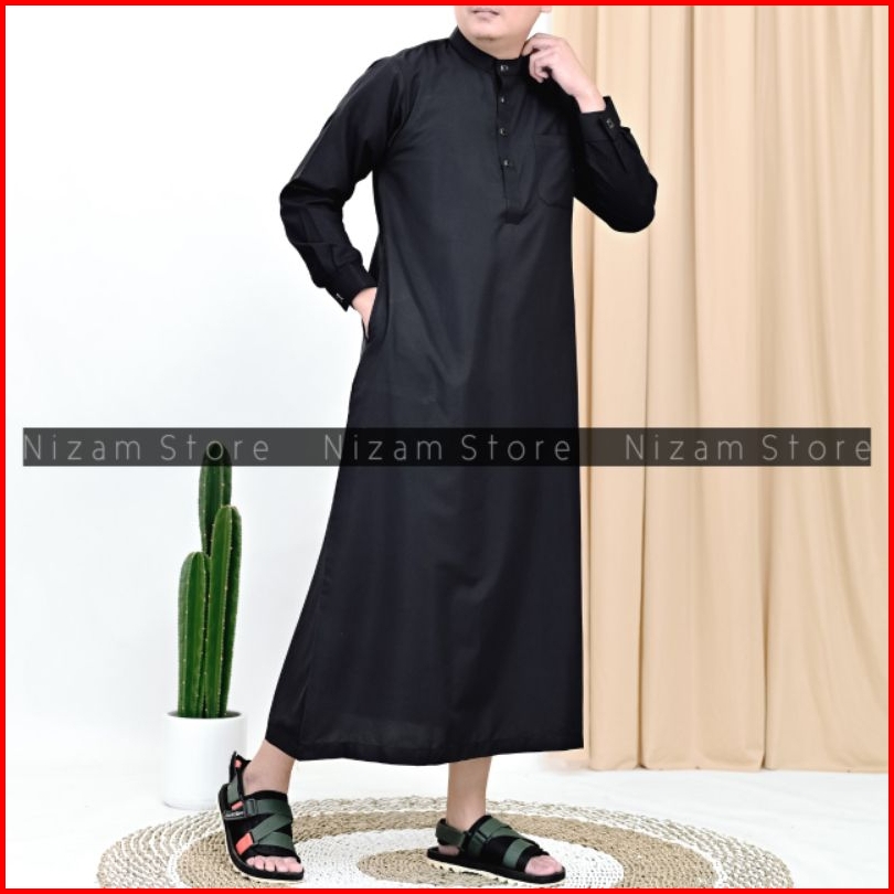 Gamis Pria Jubah Polos Lengan Manset Kancing Snap Panjang Pria Dewasa Muslim Putih Hitam Haji Umroh