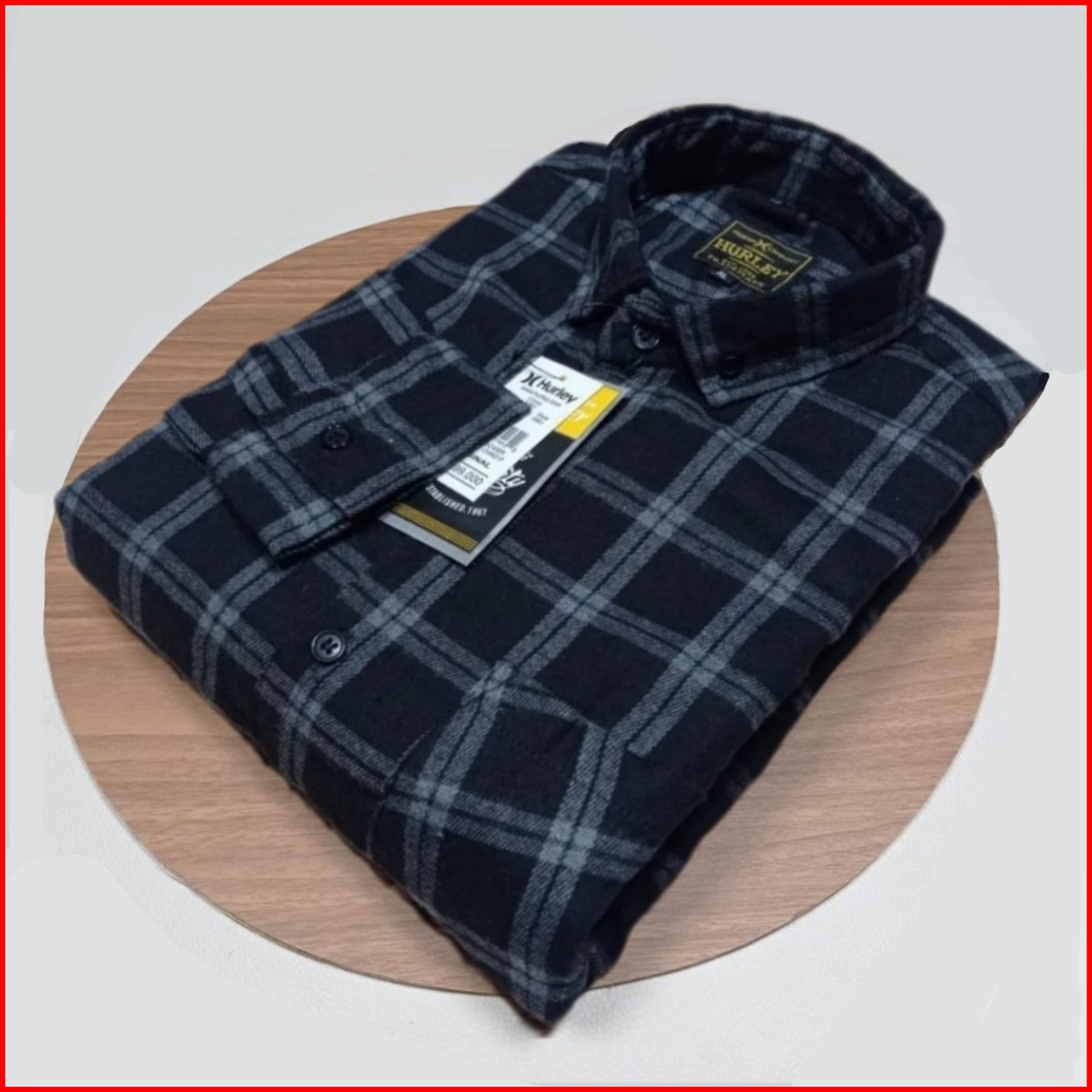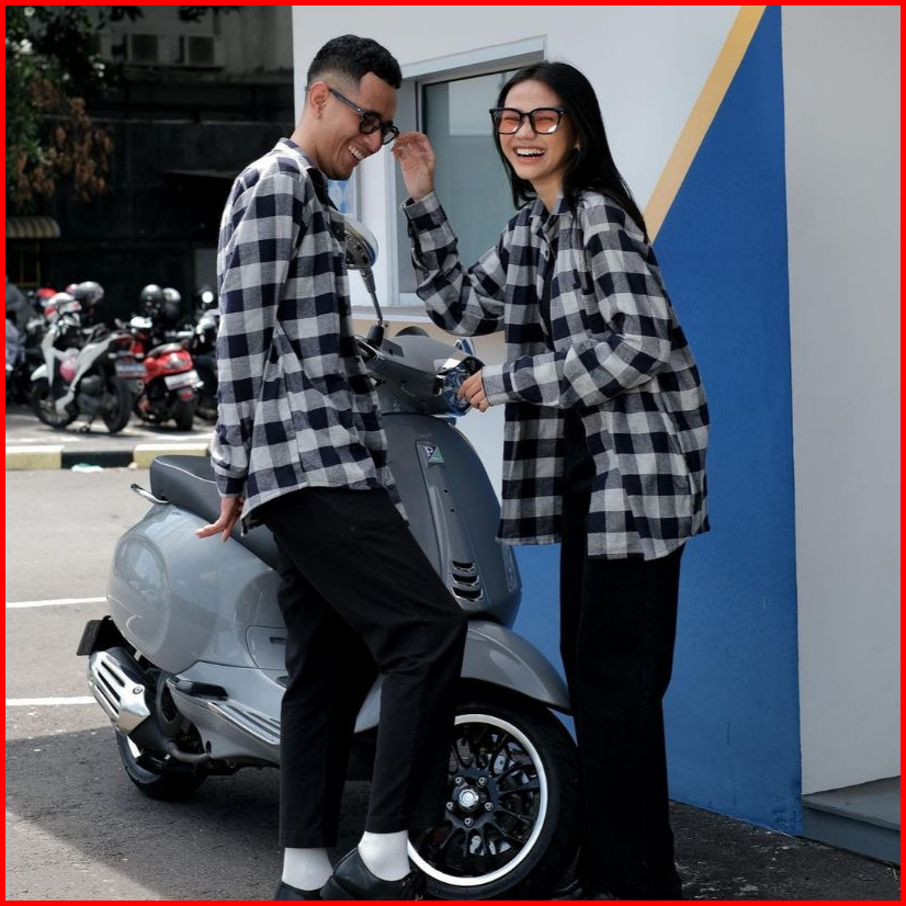 Ayz14- Kemeja Flanel Pria Wanita Lengan Panjang Premium Motif Garis Putih Double
