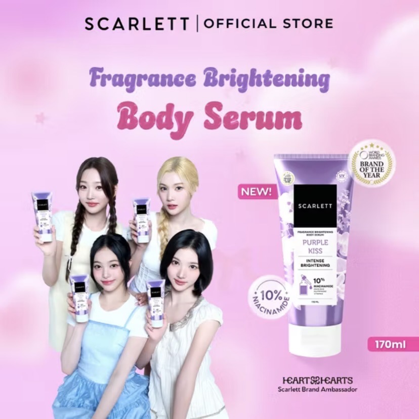 SCARLETT 10% NIACINAMIDE Fragrance Brightening Body Serum 170ml - Velvet Rouge & Purple Kiss | Intence Mencerahkan