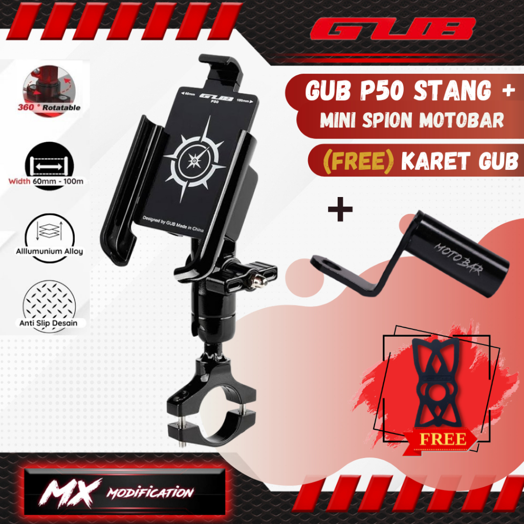 PROMO Holder hp motor besi✔ TERLARIS GUB P50 Holder HP Phone Allumunium Alloy Ori Rotasi 360° Sepeda Motor