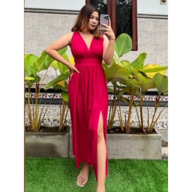 busy dress pesta kekinian terbaru 2023 bigsize tanpa lengan