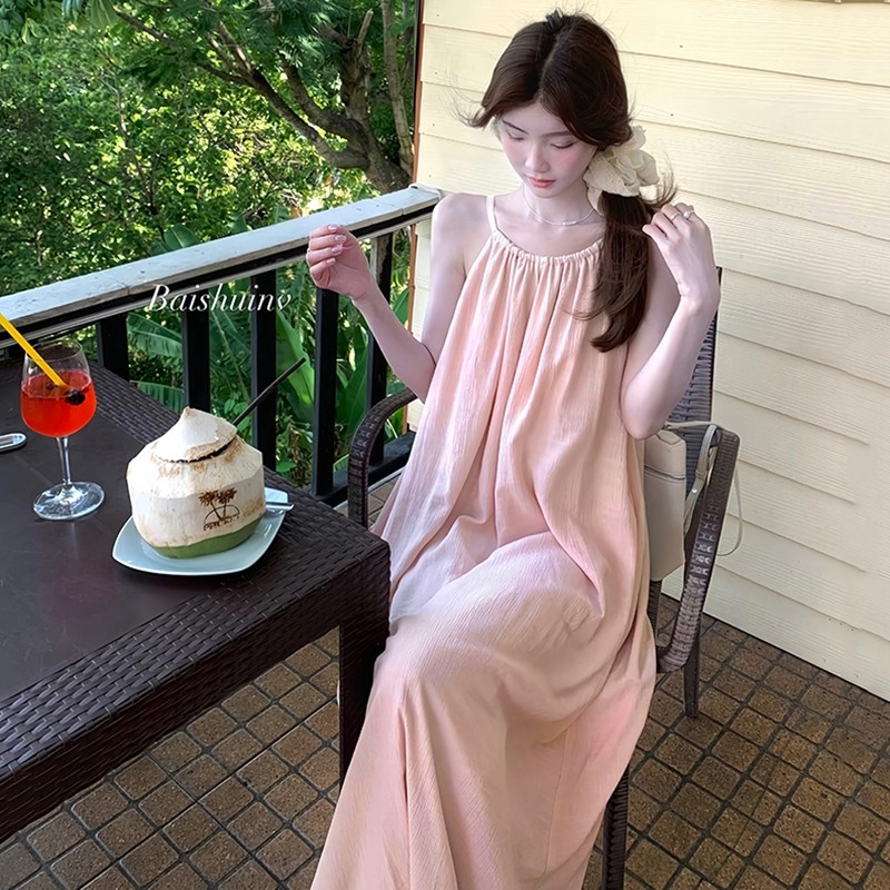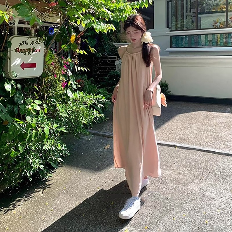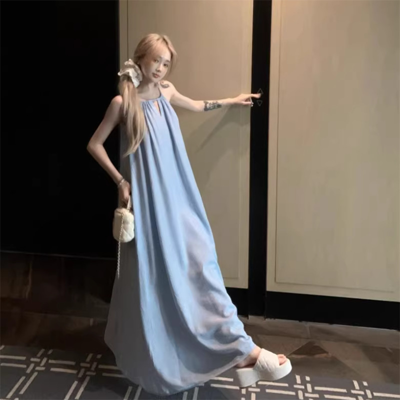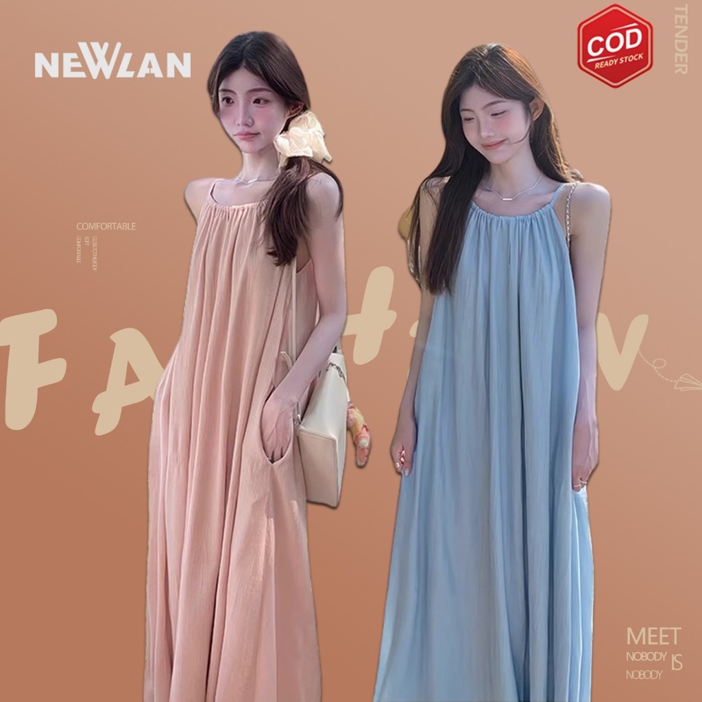 Newlan QZ183 Maxi Dress Tie Strap Sleeveless Long dress Wanita Dress Rok Party Dress / Dress Pantai / Flare Dress / Dres