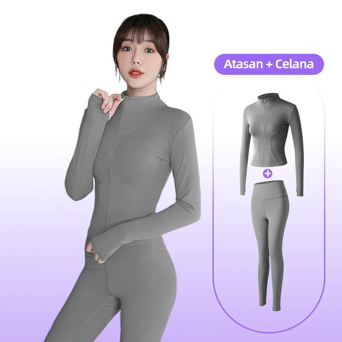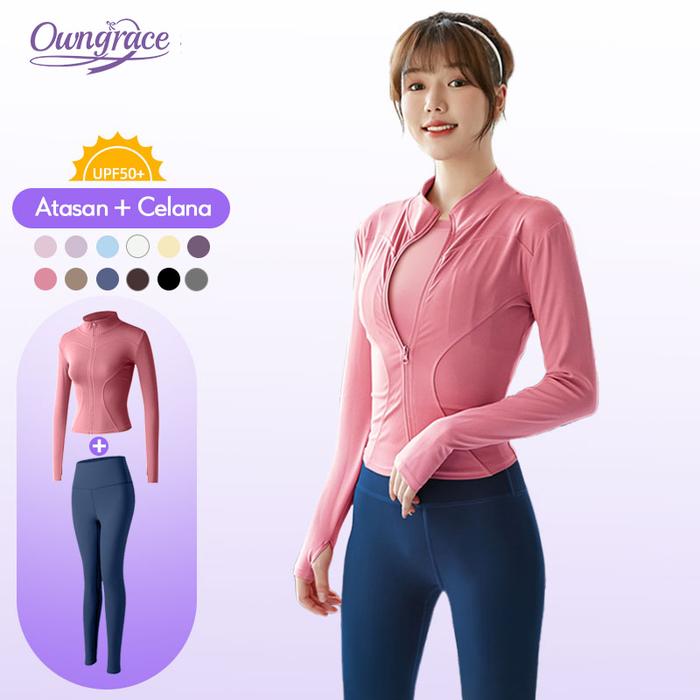 Owngrace-Setelan Baju Olahraga Wanita Set Jaket Senam Zumba Yoga Sport - Black+Pink, M