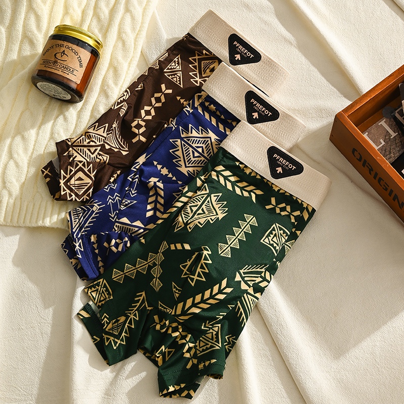 【】4PCS Celana Dalam Boxer Underwear Pria/Ice Silk Antibakteri Boxer Pria