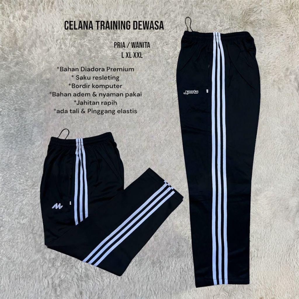 Celana Training Joger Panjang Lis 1 dan Lis 3 Remaja Dewasa Anak Tanggung Pria Wanita