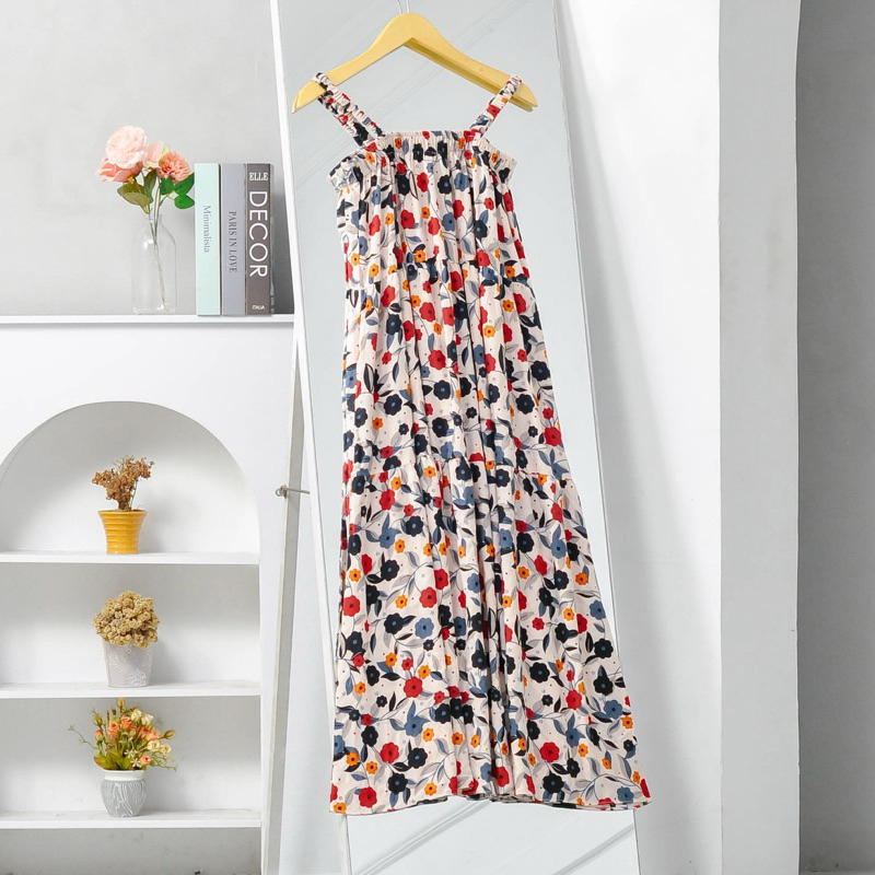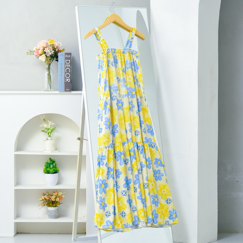 Lavanya Dress Tali Satu Tanpa Lengan Bumil Busui Dress Pantai Motif Bunga Rayon Viscose