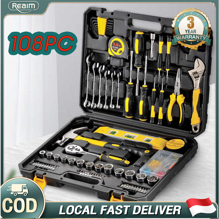 REAIM kunci set lengkap 108PCS Hand Toolset Rumah Tangga Tool Kit Set