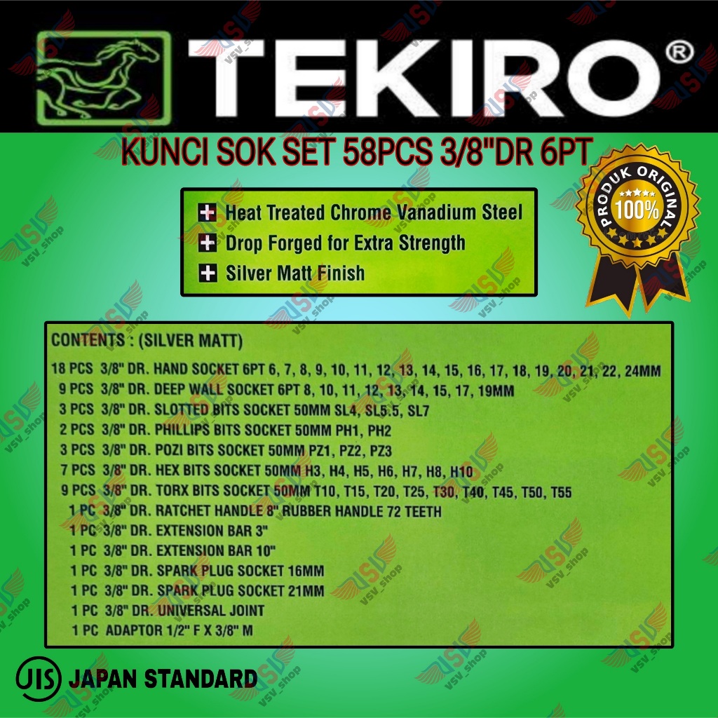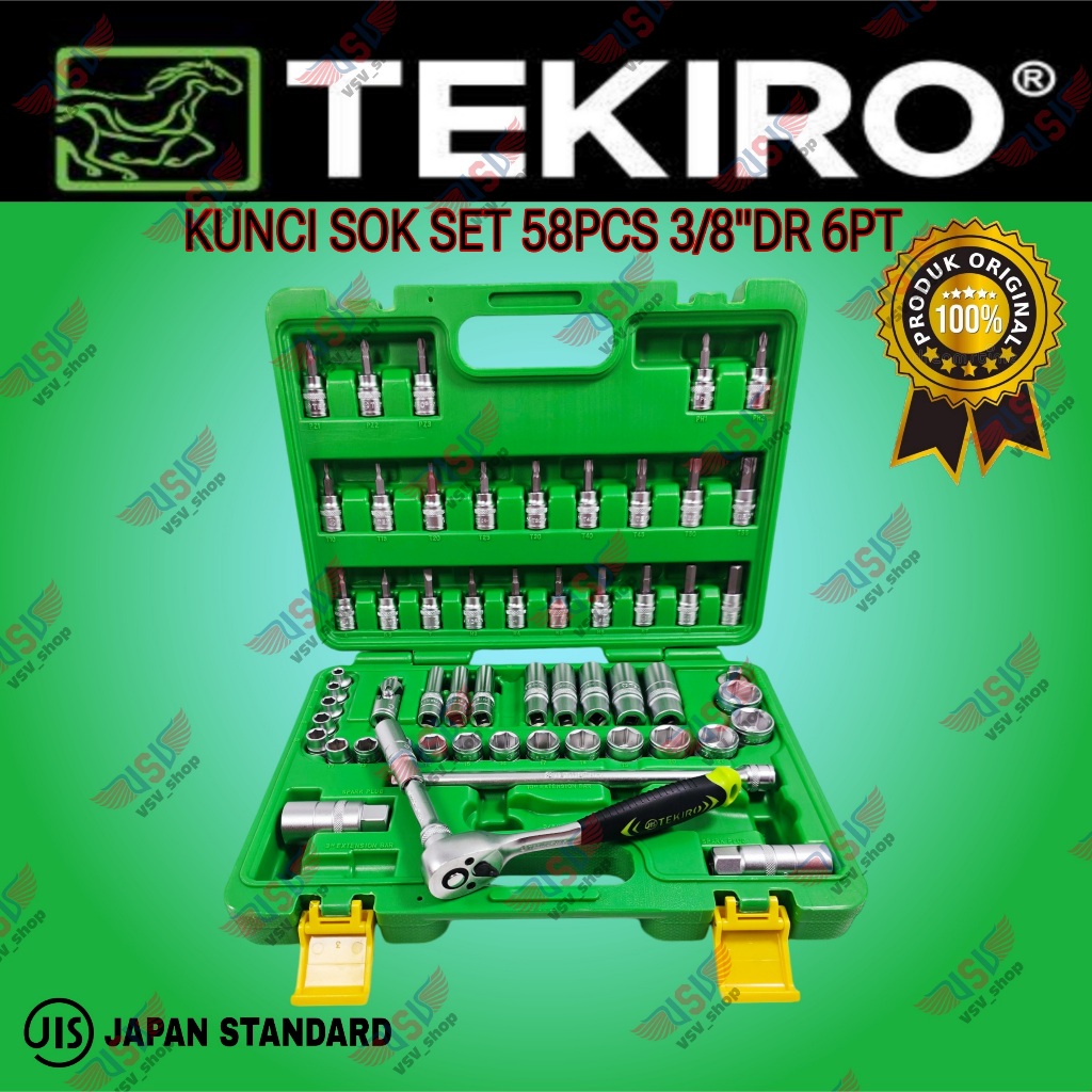 TEKIRO Kunci Sok Set 58pcs 3/8"DR 6PT Kunci Sock Hand Socket Set