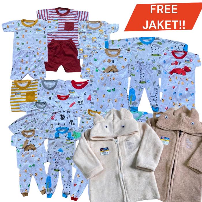 (Free Jaket) - 100Rb Dapat 7 Stel Paket Usaha Stelan 3-18 Bulan Setelan Baju Bayi Katun Parsel - Cewe, 3 Stel Panjang 3