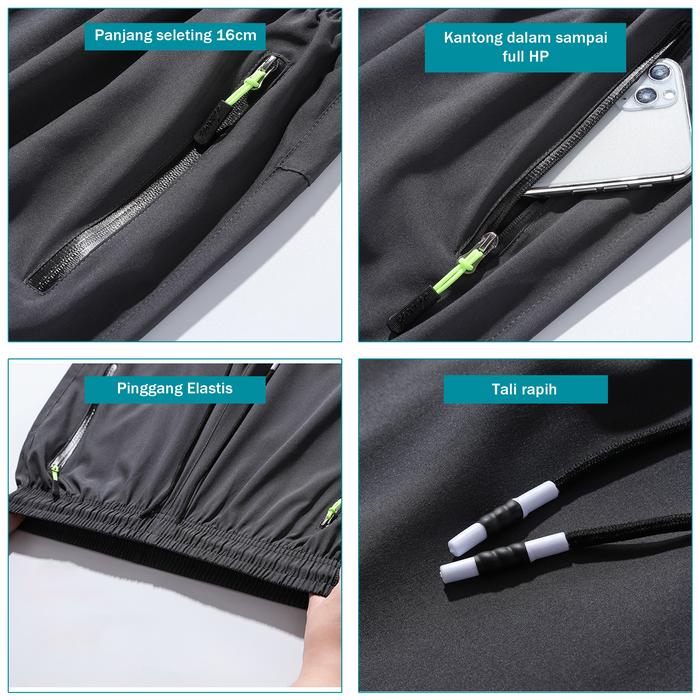 Elfs Active Running Pants - Celana Panjang Ringan Lari Jogging Marathon Parasut - Abu Tua, Int:M