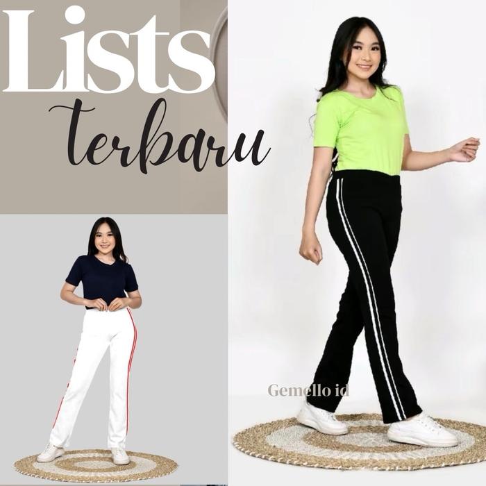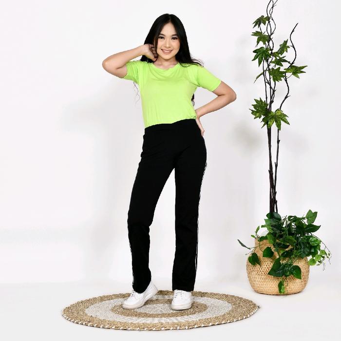 Celana Panjang List/Garis Dua Olah Raga/Training Panjang Wanita Olahraga Sport - Hitam, L