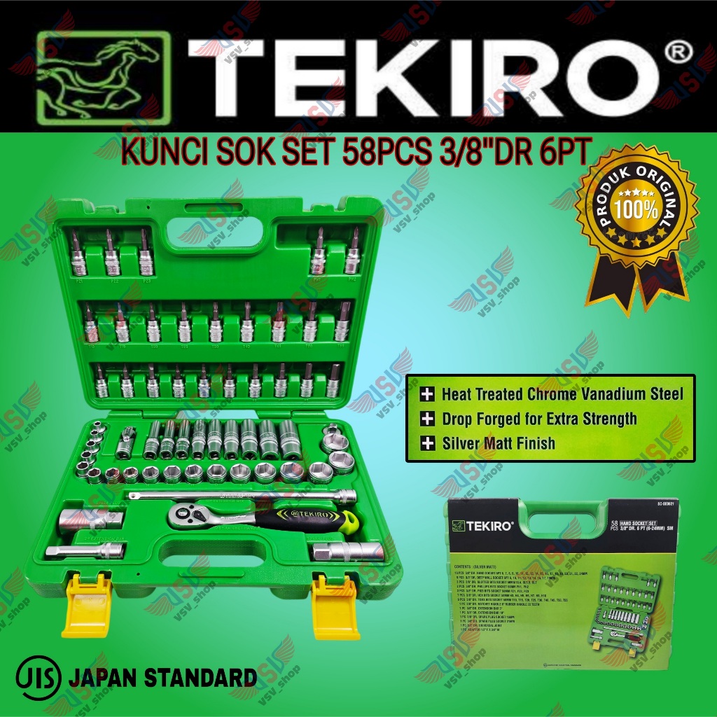 TEKIRO Kunci Sok Set 58pcs 3/8"DR 6PT Kunci Sock Hand Socket Set