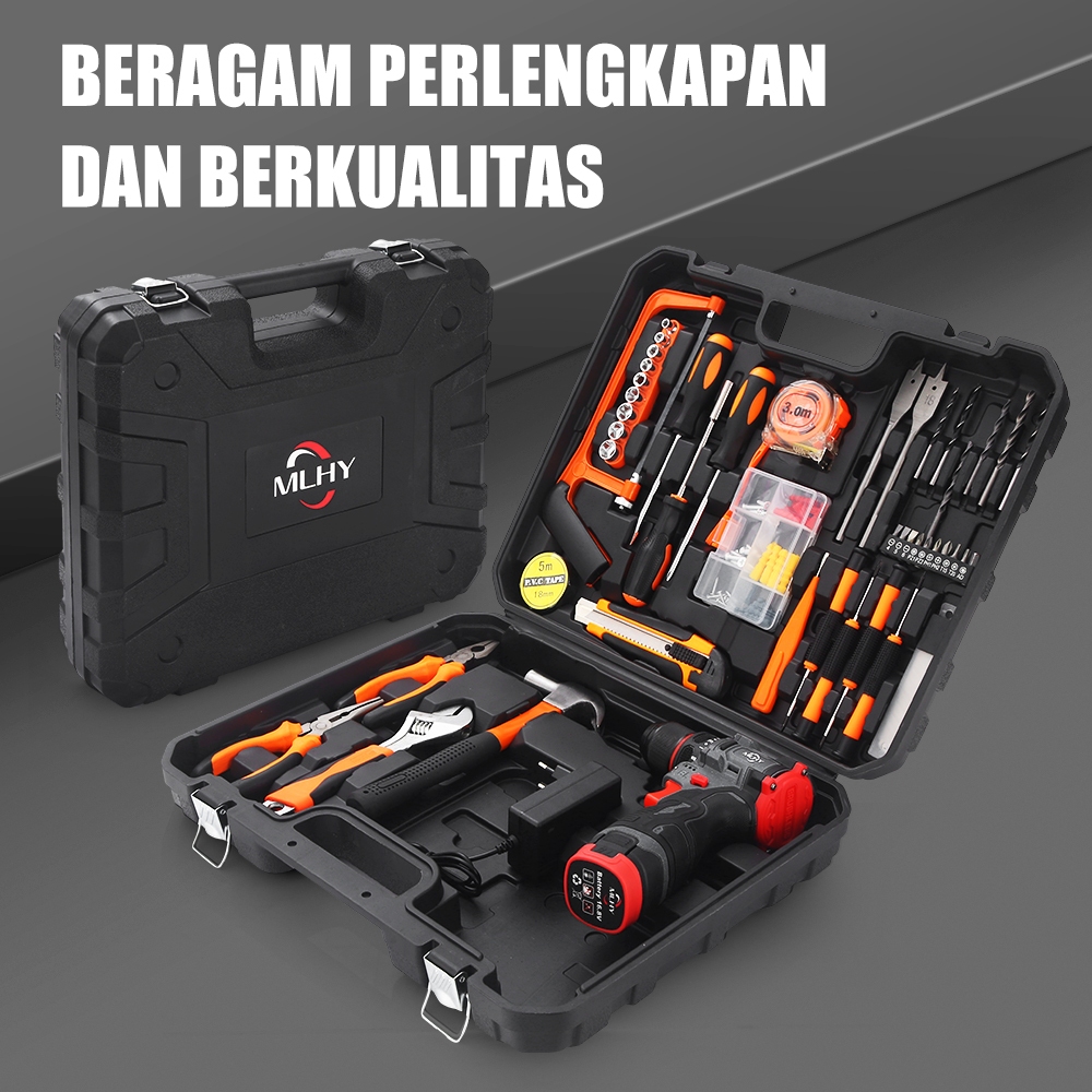 MLHY 102PCS Toolkit Bor listrik Alat Pertukangan Set bor listrik brushless Palu Handtool Box Set Socket Alat Rumah Box O