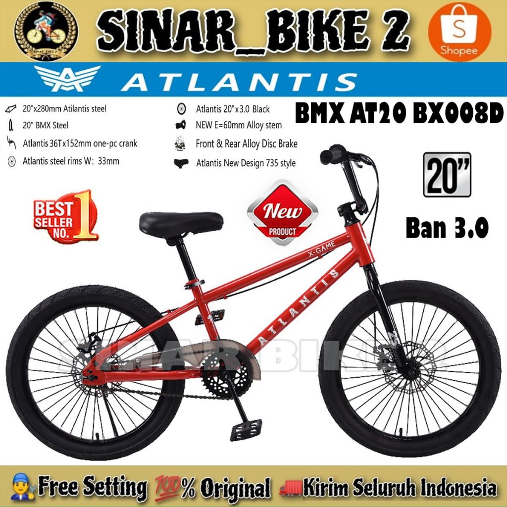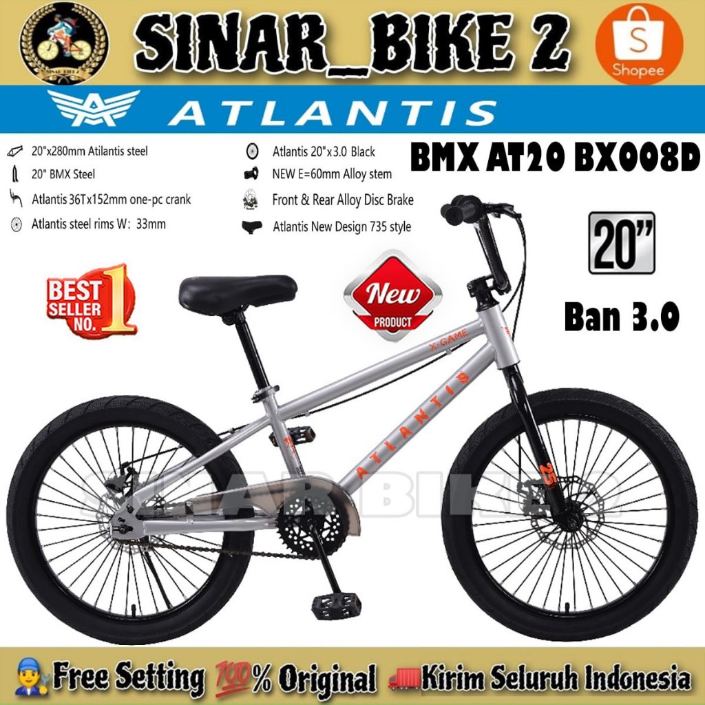 Sepeda Anak Laki BMX ATLANTIS AT BX 008 DB CAKRAM Ban Jumbo 3.0 Rem Cakram Ukuran 20 Inch Usia 8-11 Tahun