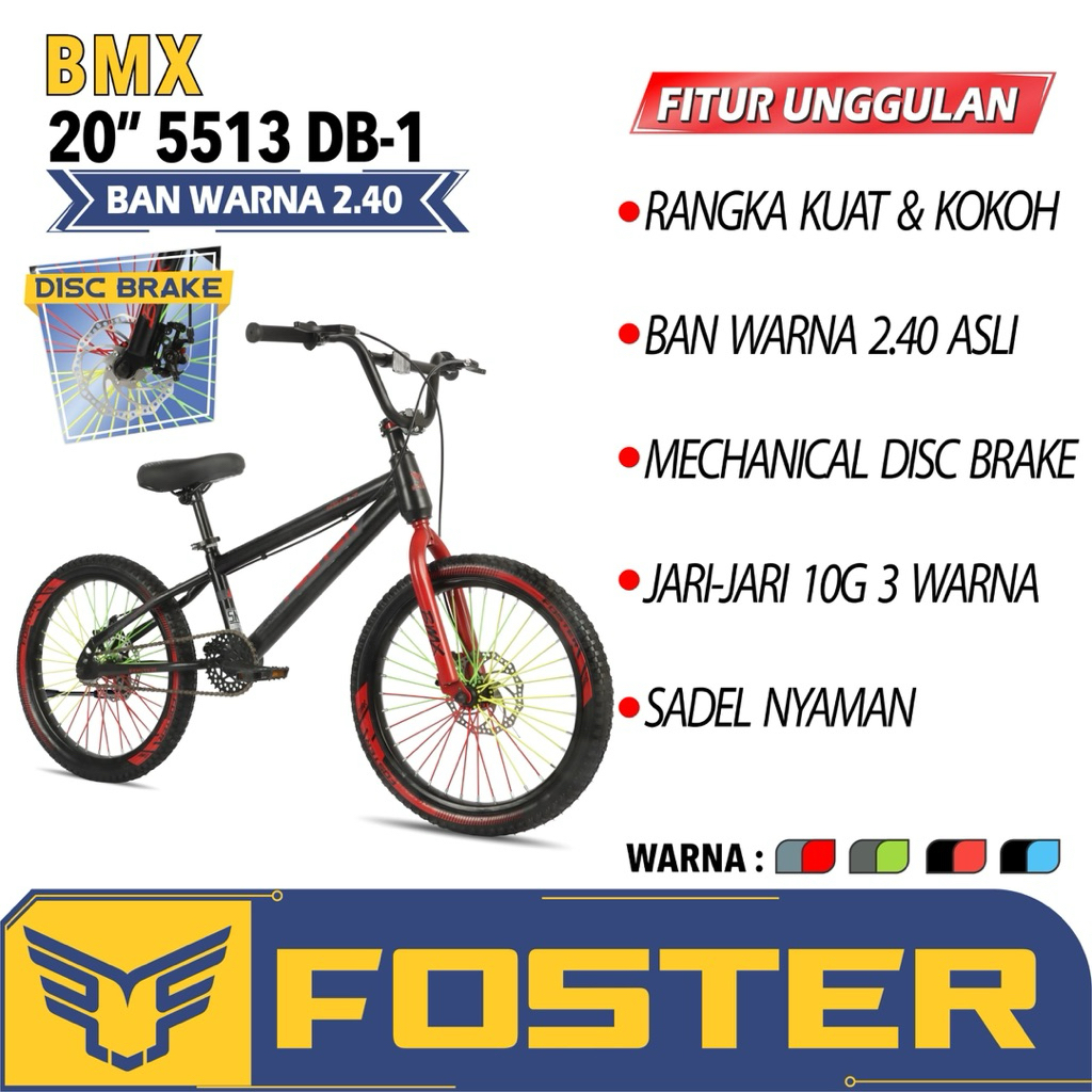 Sepeda BMX 20 Foster 5513 Ban 2.40 & Jumbo 3.0 Rem Cakram