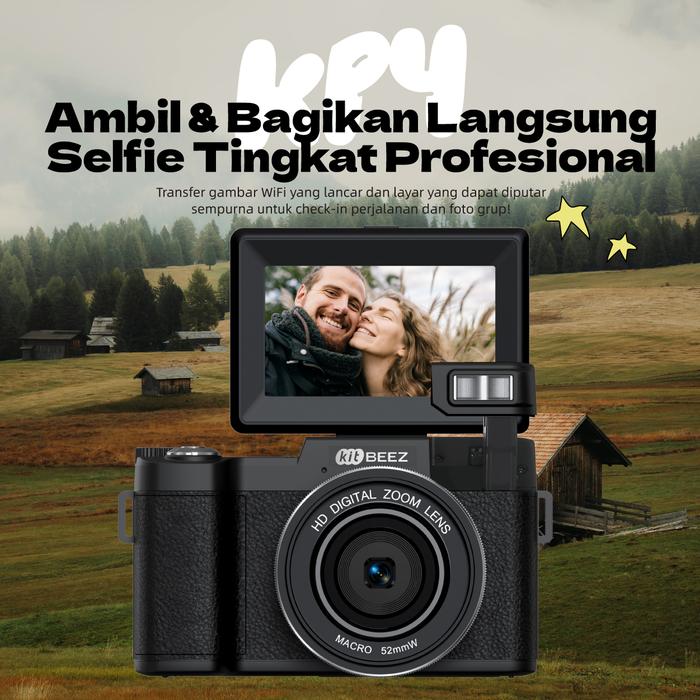 【Kitbeez Kp-4】 Kamera Digital 5K Wifi 75Mp Dengan Zoom Digital 18X, Layar Putar 180°, Flash Intelligent Muncul Otomatis
