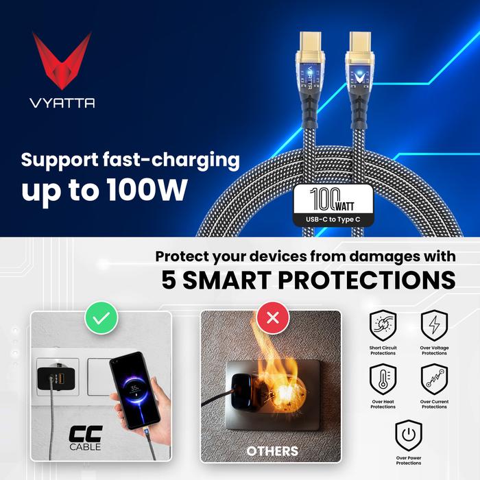 VYATTA NEW CC CABLE LIGHTNING TYPE C TRANSPARENT LED POWER DELIVERY VOOC