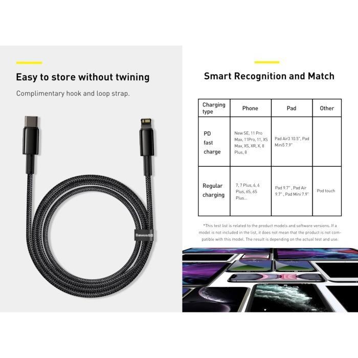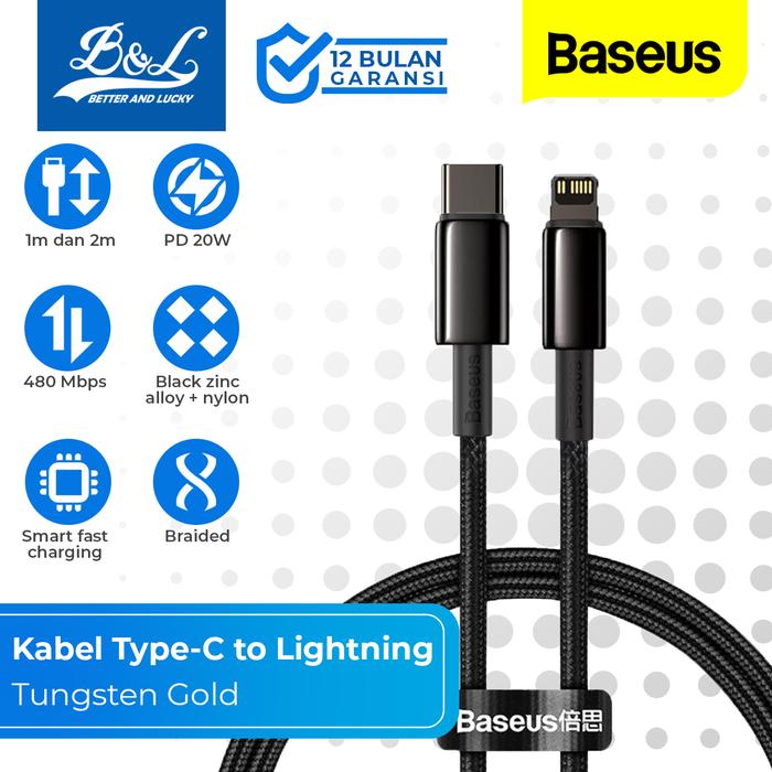 BASEUS Tungsten Gold Kabel Data iPhone Type-C to Lightning 20W Fast Charging Braided