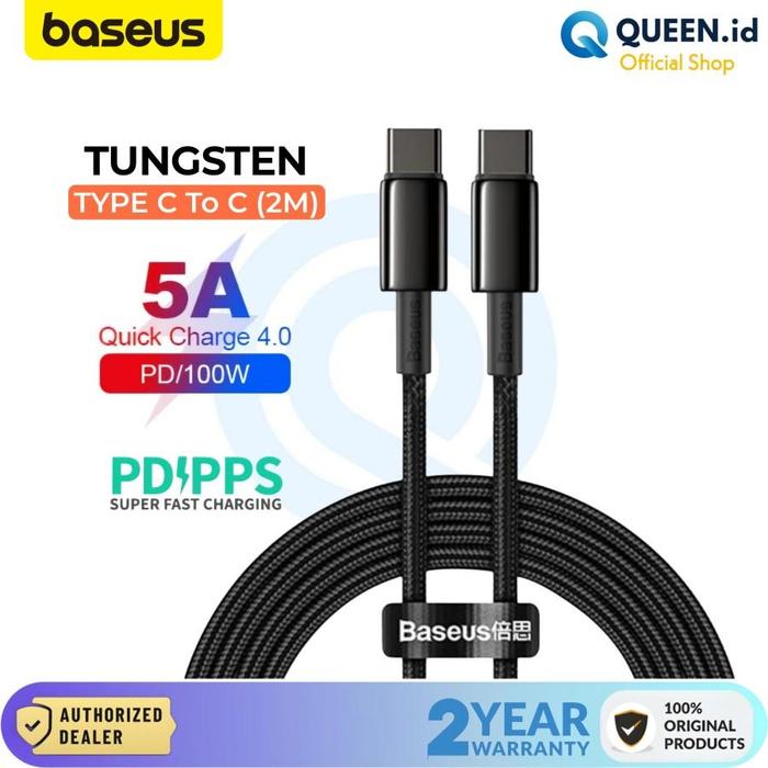 Baseus Tungsten Kabel Data Charger USB TYPE C TO C 5A 100W 2M PD QC 4.0 Braided Super Fast Charging