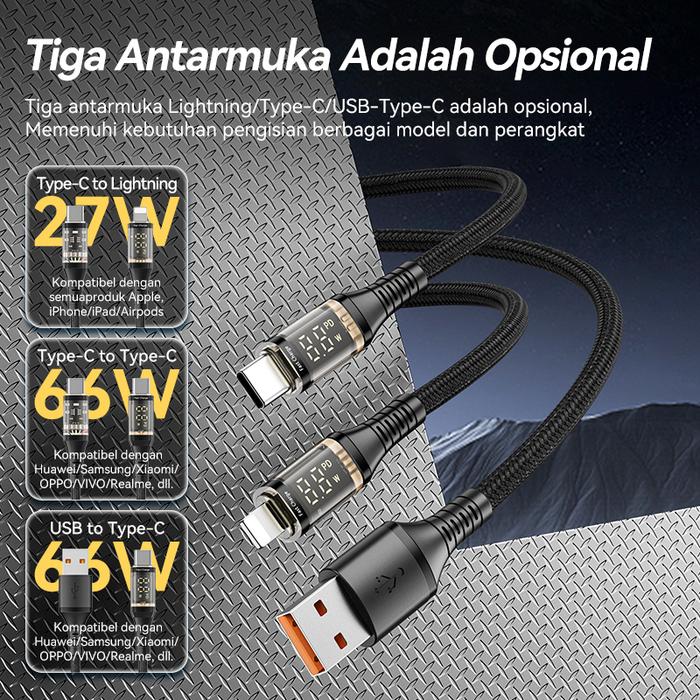 KIVEE Kabel Data Super Fast Charging Type C to Lightning PD 66W LED Digital Display KV-CT37 Tampilan