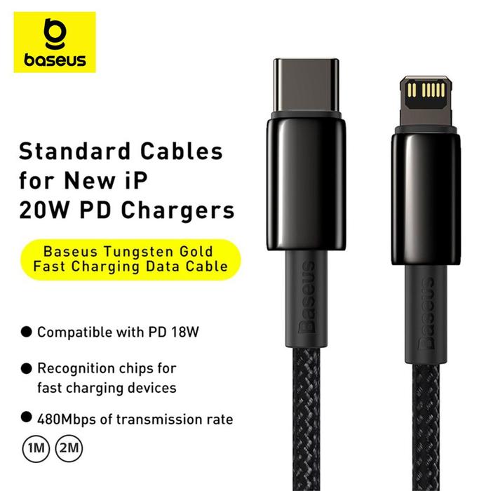 Baseus Tungsten Gold Fast Charging Kabel Data Type-C to Iphone PD 20W 1Meter/2Meter Hitam Kabel