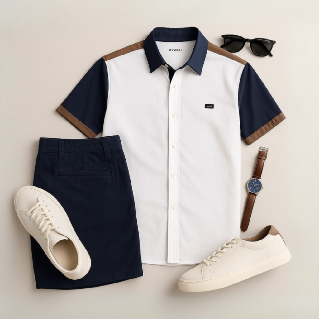 Kemeja Pria Lengan Pendek Ryusei Kerah Reguler Kasagi CMB White Ukuran S-XL