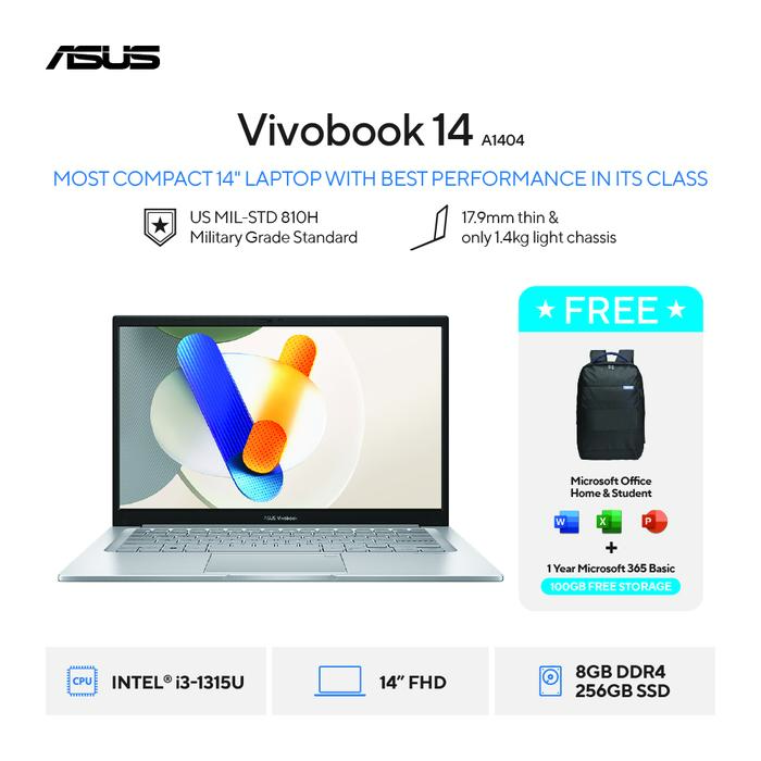 [Free Mouse] Asus Vivobook 14 A1404Va-Fhd3823M - Cool Silver [Intel Core I3-1315U / Intel Uhd Graphics / 8Gb / 256Gb / 1